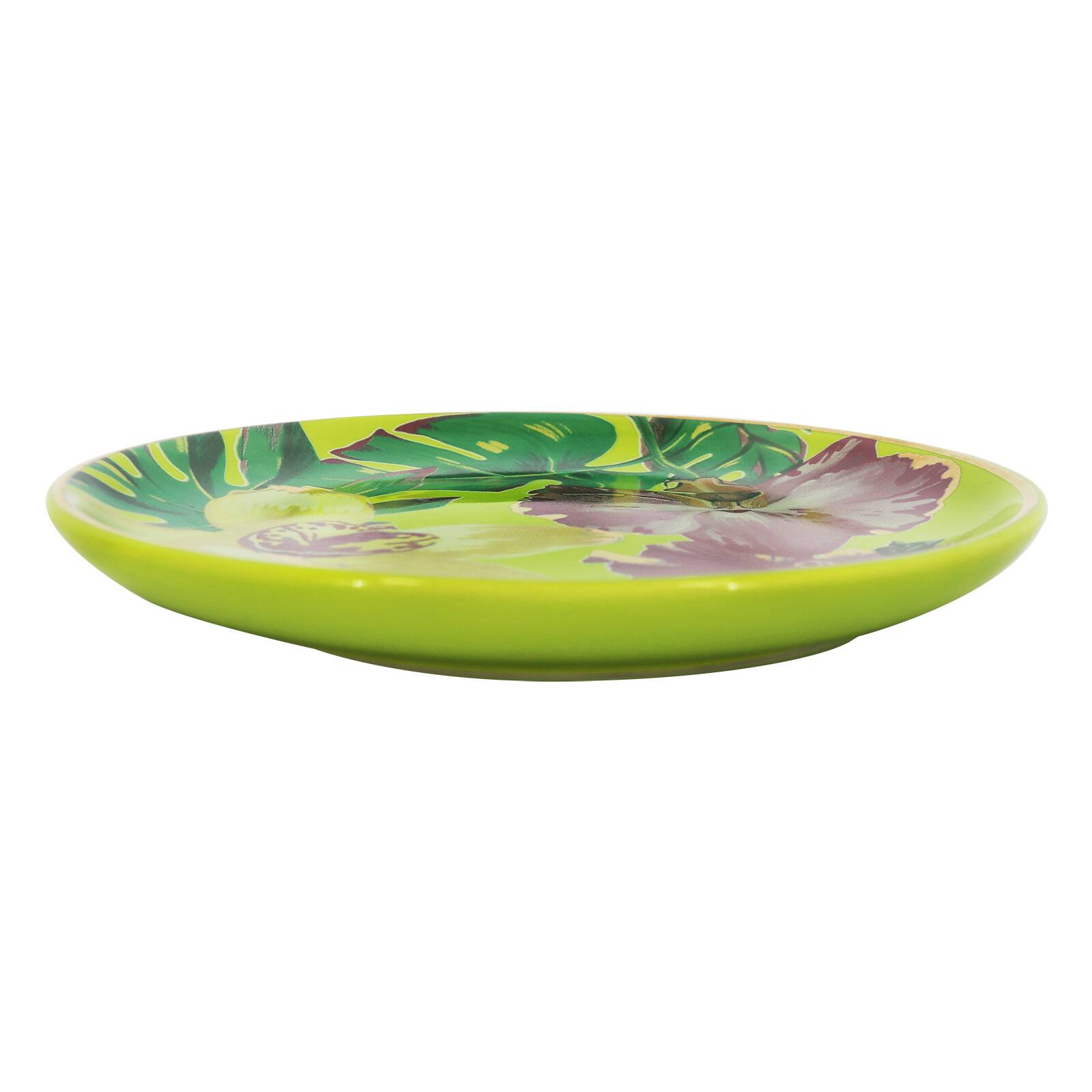 6.75" Light Green Flowers Ceramic Plate by Ashland®