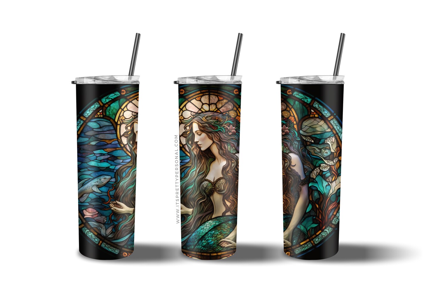 #683 CLEAR- 20oz - Stained Glass Mermaid 9.4" x 8" Pattern Vinyl Wrap