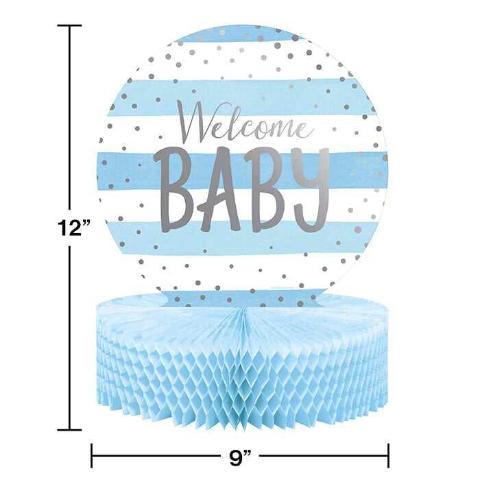 6/Case Bulk Blue and Silver Celebration Baby Shower Centerpieces