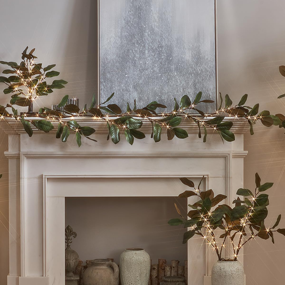 6FT 80 LED Spring Greenery Magnolia Lighted Garland with Timer