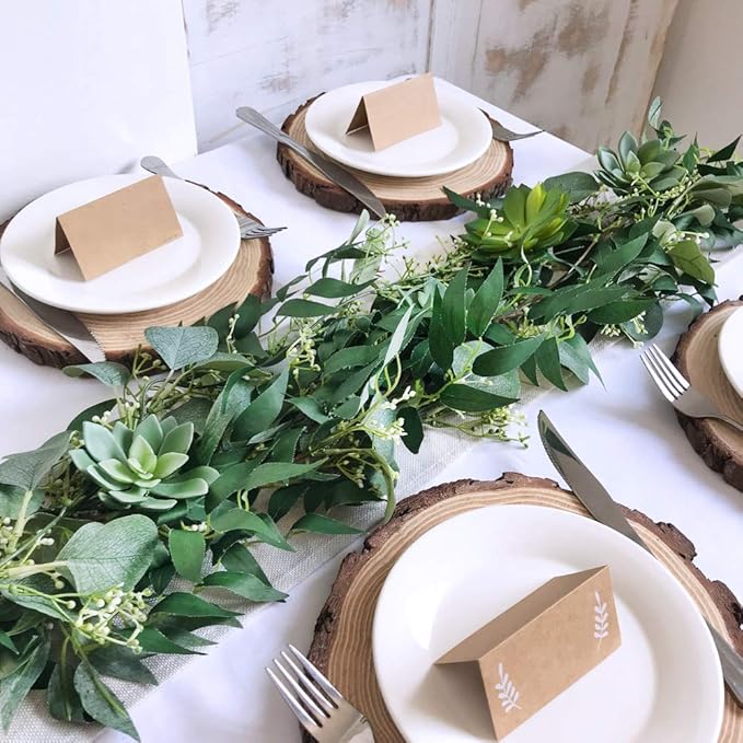 6ft Artificial Silver Dollar Eucalyptus & Willow Twig Garland - Mixed Greenery Vine with Intertwined Twigs - Rustic Faux Greenery for Wedding Arch, Table Runner, and Farmhouse Mantel Decor