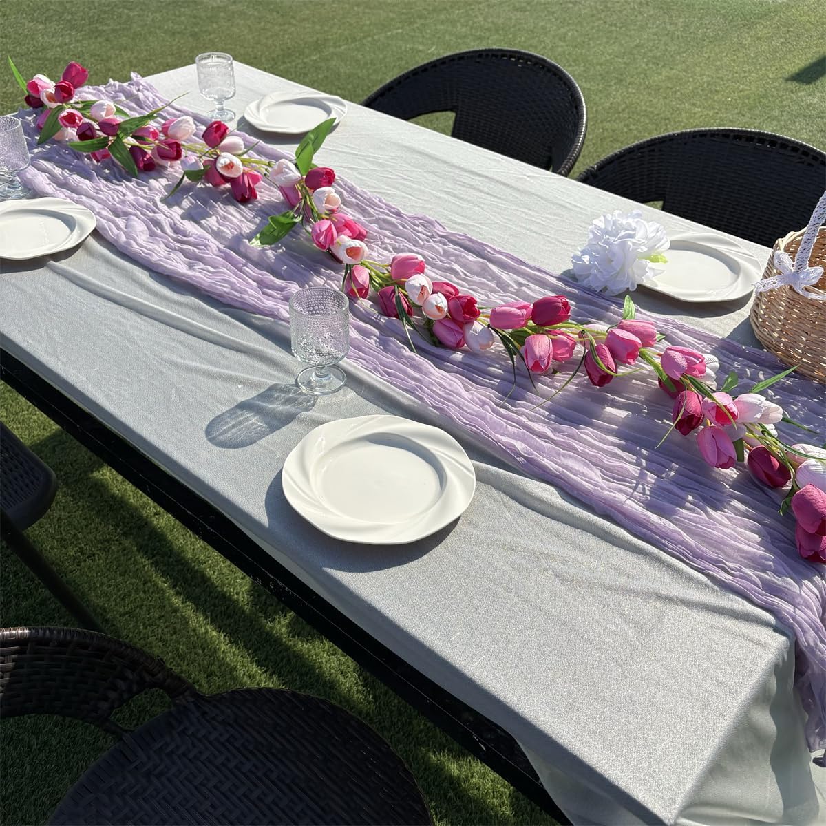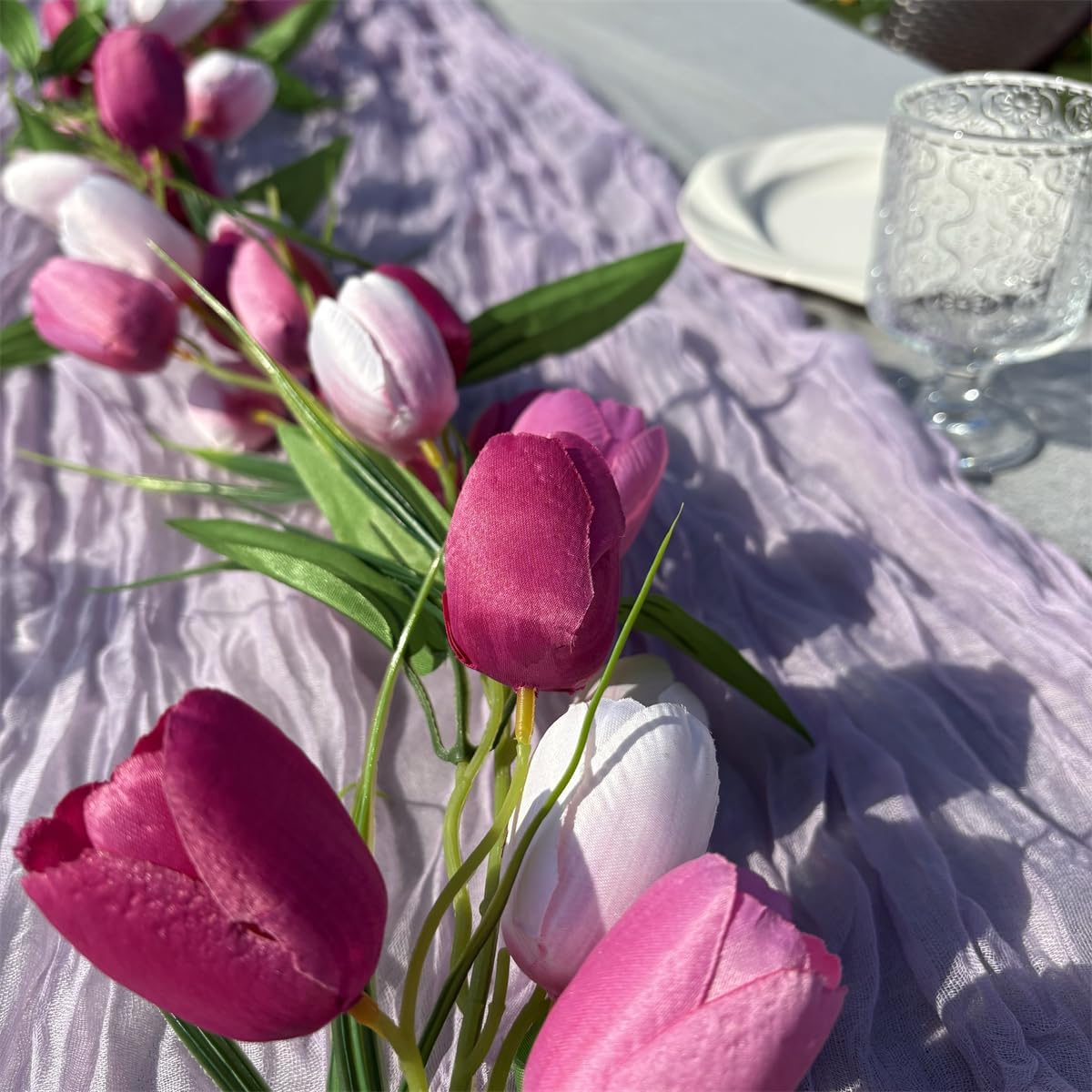 6ft Artificial Tulip Garland with Green Leaves – Easter & Wedding Flower Vine for Wall, Table, Mantle, Indoor & Outdoor Decor