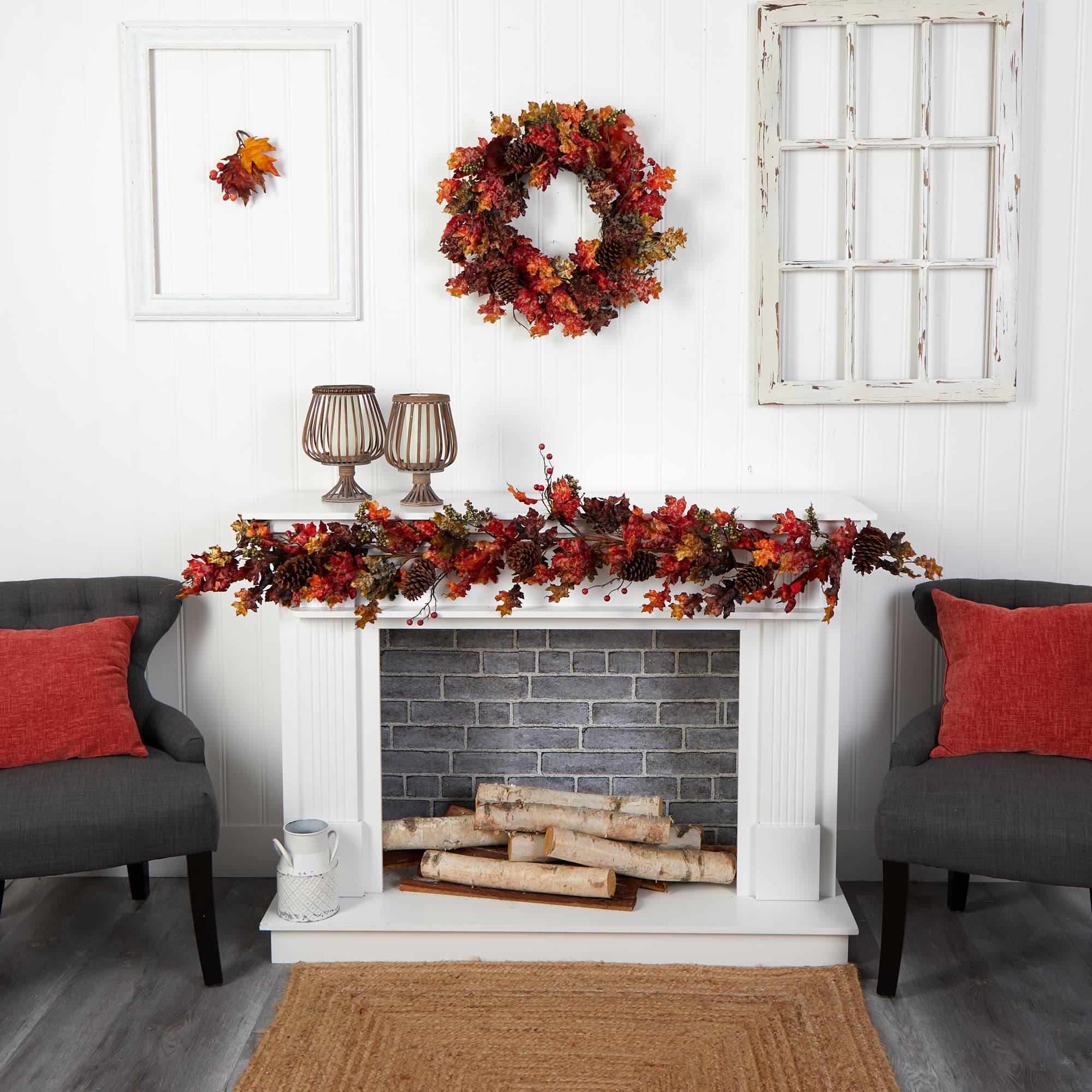6ft. Autumn Maple Leaves, Berry & Pinecones Fall Garland