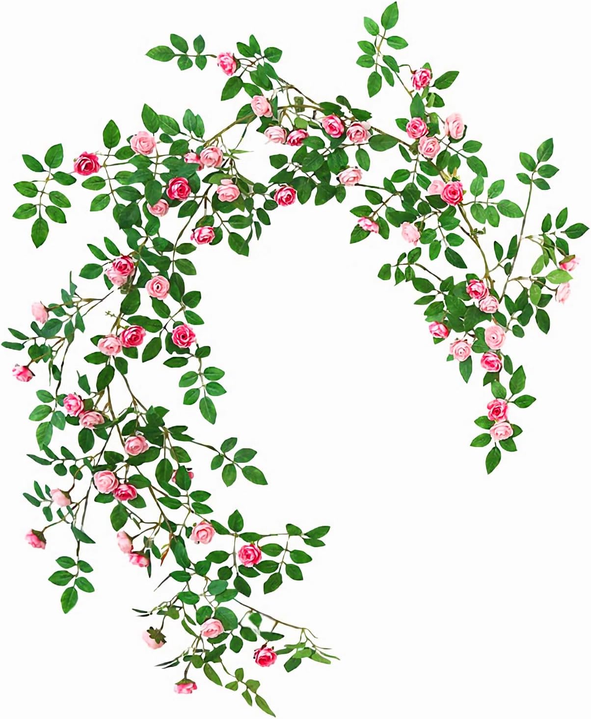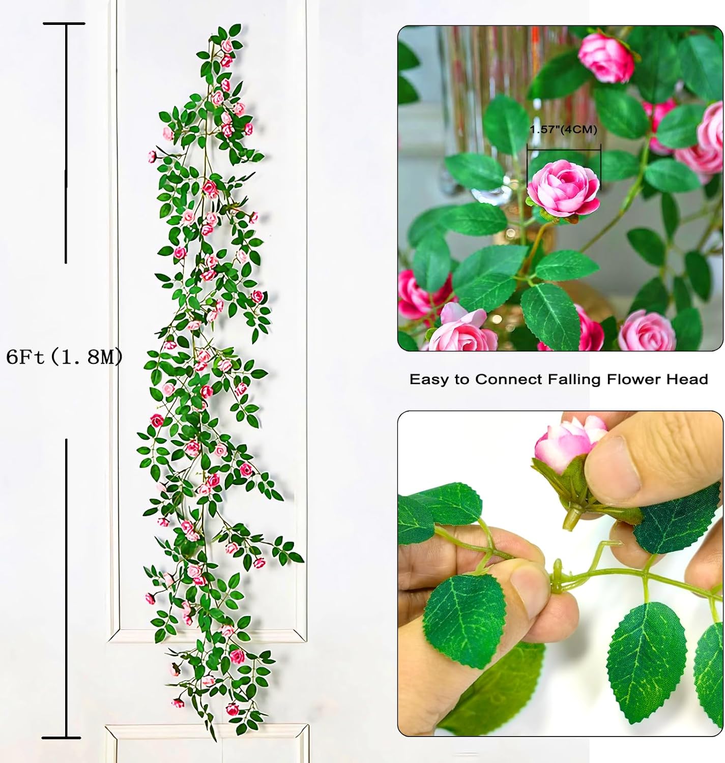 6FT Bendable Pink Rose Flower Garland, Artificial Silk Wild Roses Vine Leaves Hanging Flowers for Wall Fireplace Fence Trellis Wedding Baby Shower Room Home Spring Summer Decor(1PC)