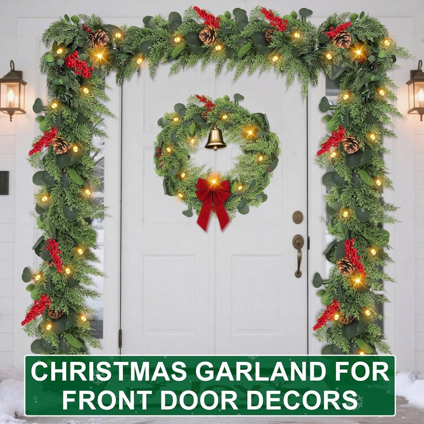 6Ft by 10 Inch Thicker Real Touch Cedar Garland with 30 Warm Lights (Real Touch Cedar Garland)