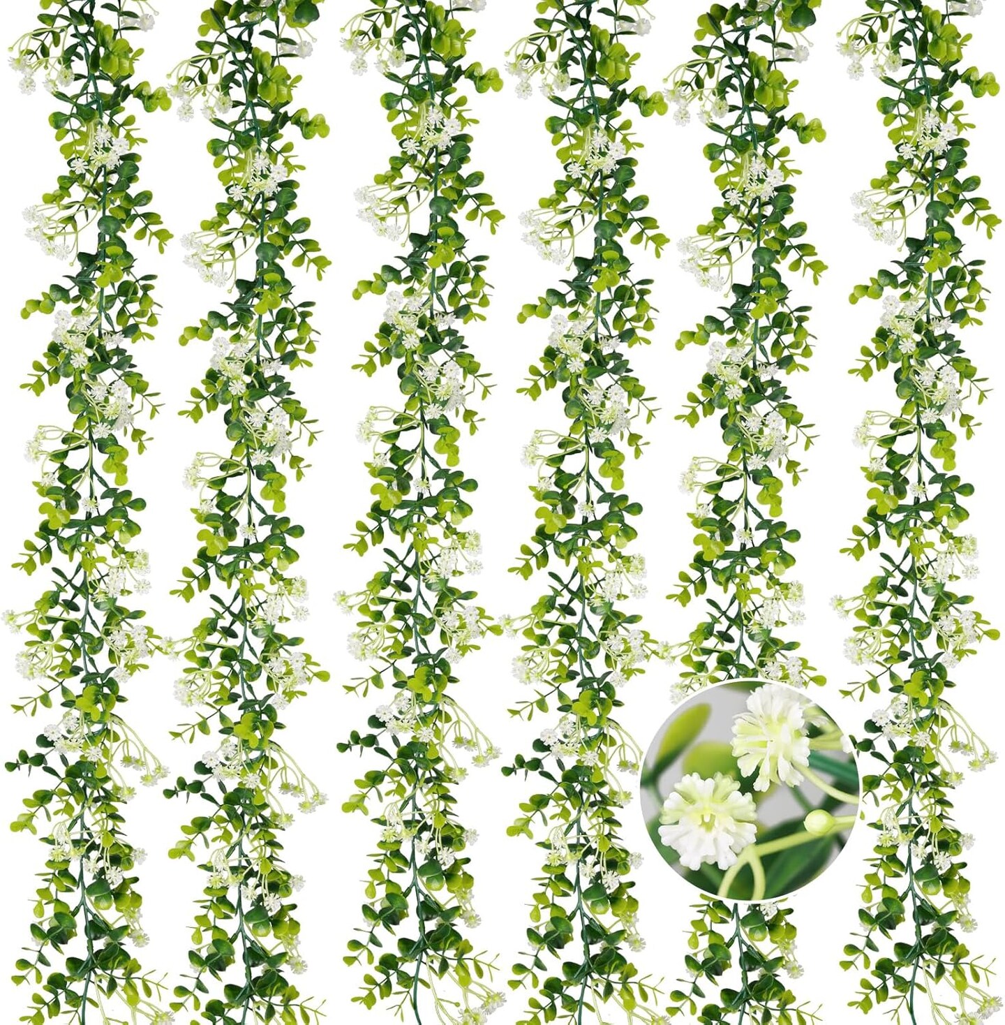 6FT Eucalyptus Garland with Flowers, 6 Pack Artificial Greenery Garland