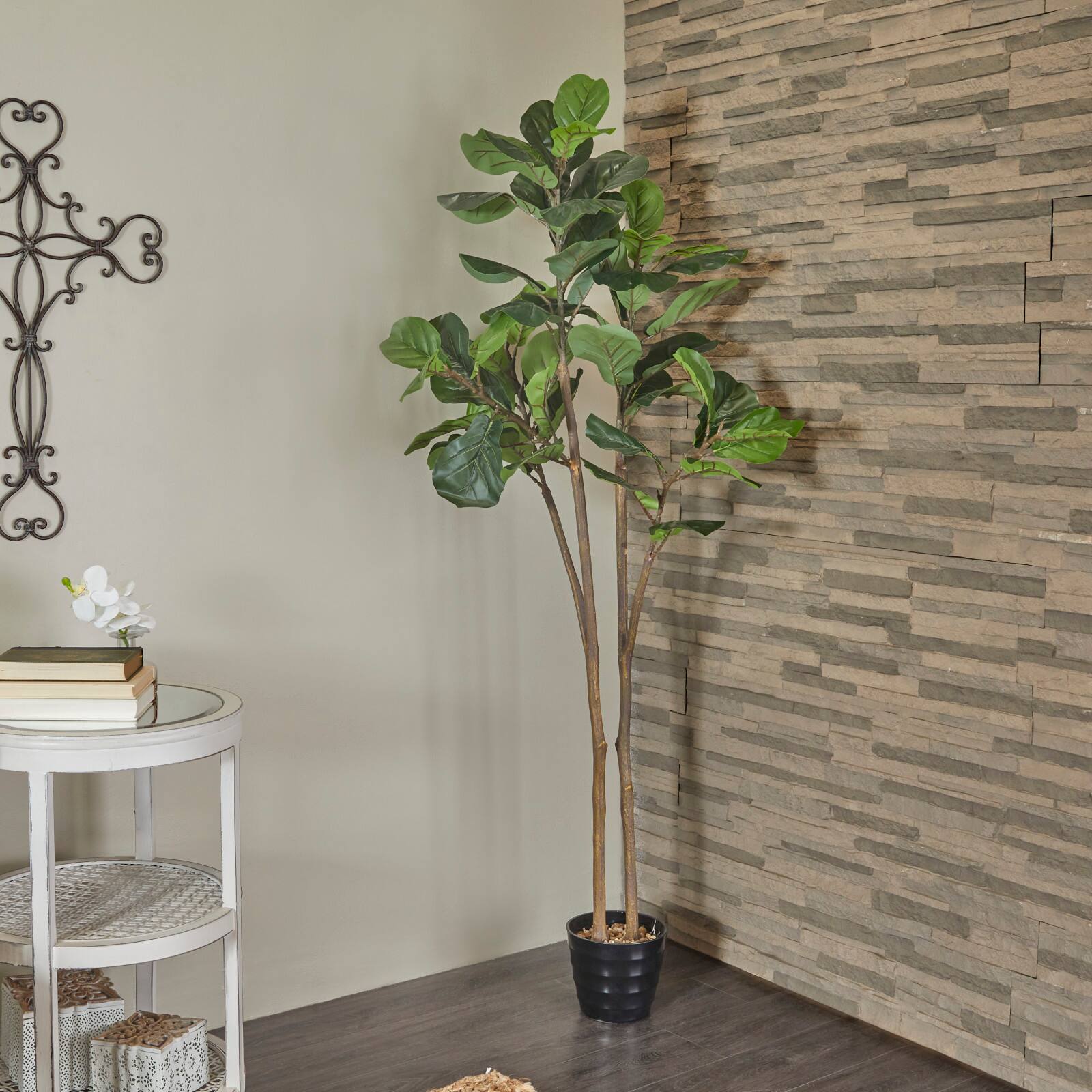 6ft. Green Faux Foliage Fiddle Leaf Artificial Tree with Black Melamine Pot
