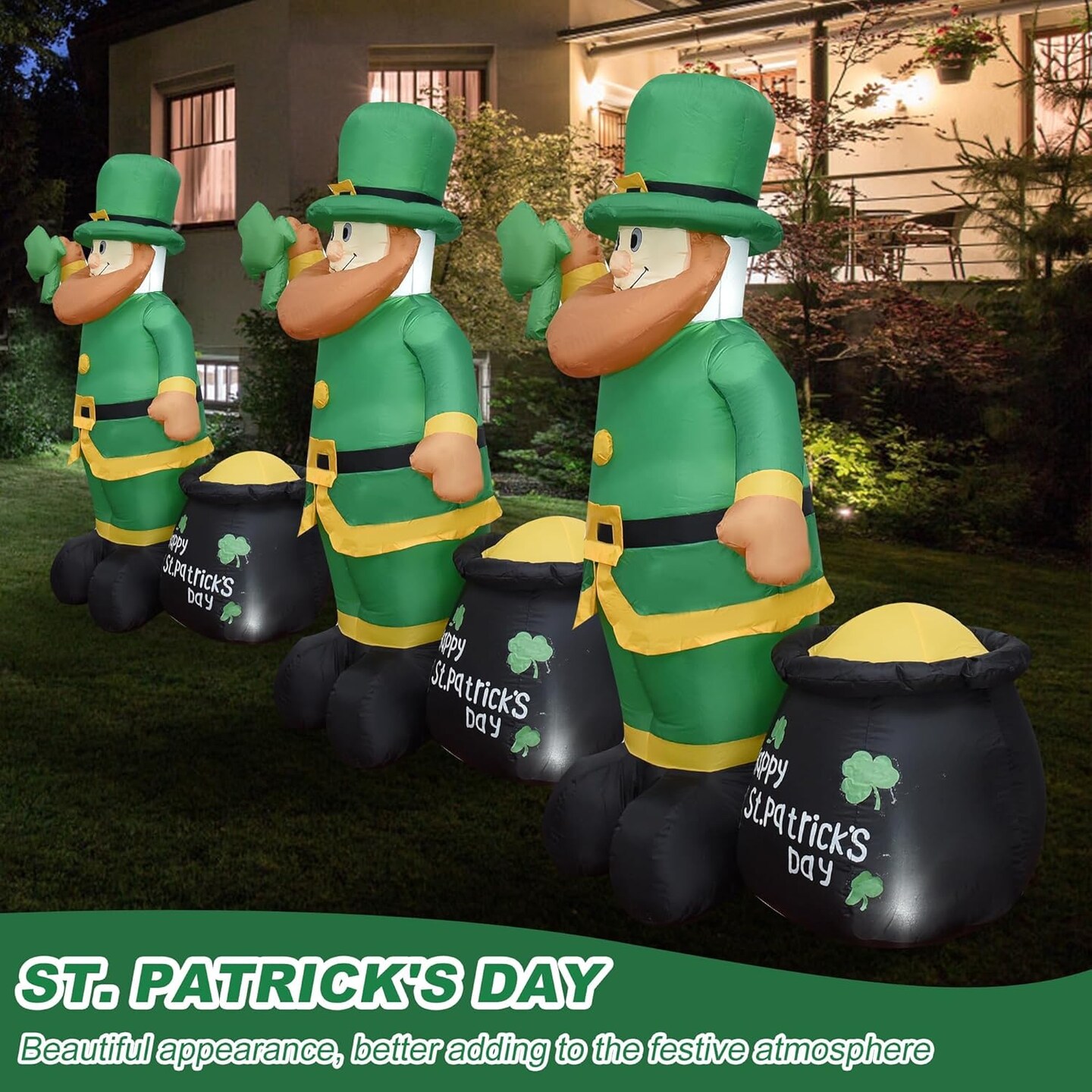 6FT Inflatable St. Patrick's Day Leprechaun with Shamrock & Pot of Gold – LED Yard Decoration