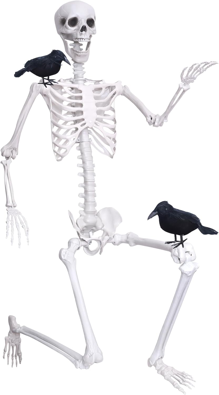 6Ft Life Size Skeleton with 2PCS Black Crows for Halloween