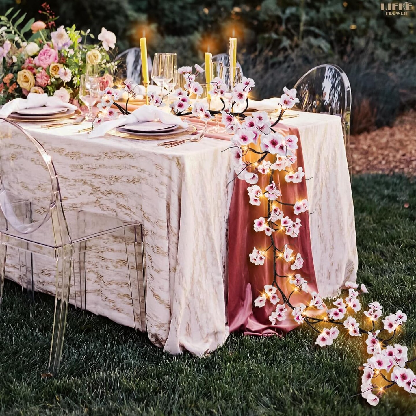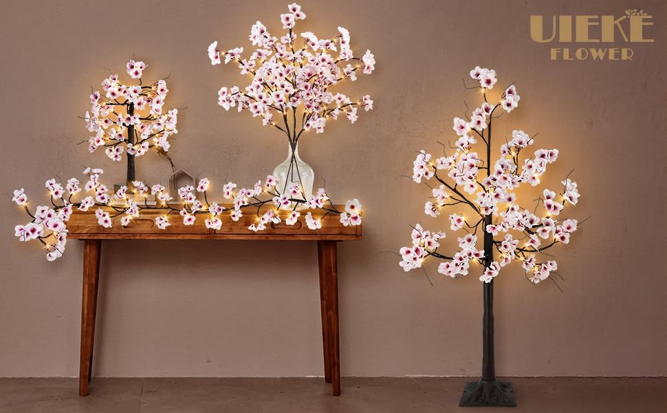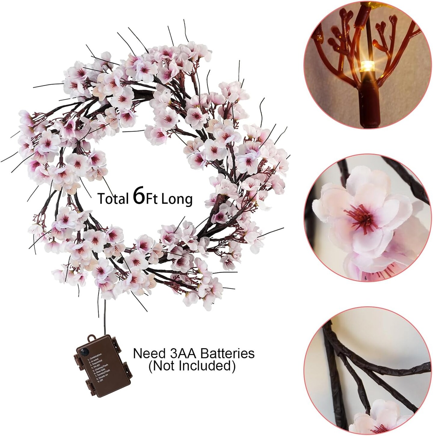 6FT Lighted Cherry Blossom Christmas Garland with Timer 48 LED Fairy Lights