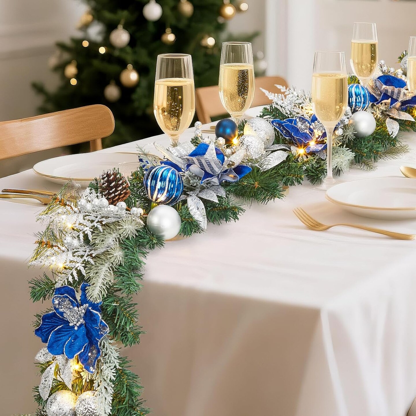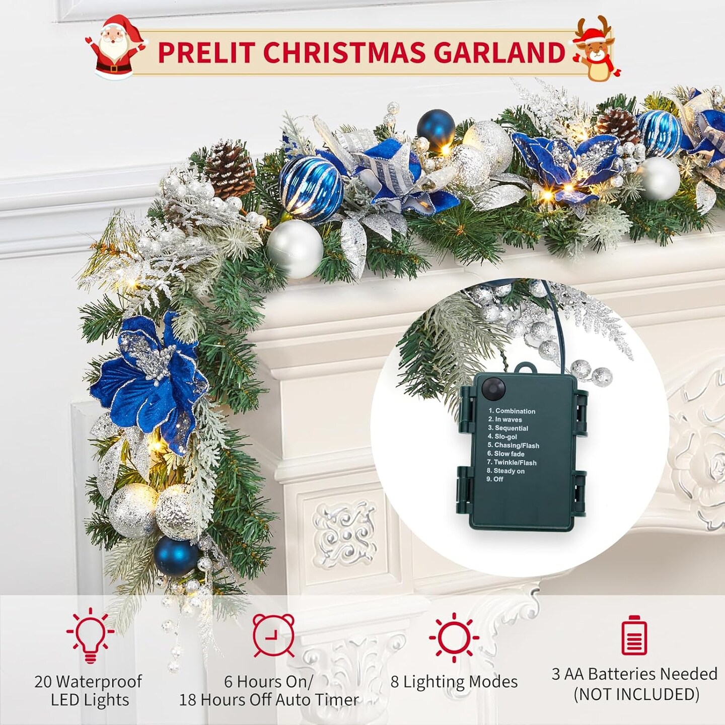 6ft Prelit Christmas Garland with Lights (Blue Silver)