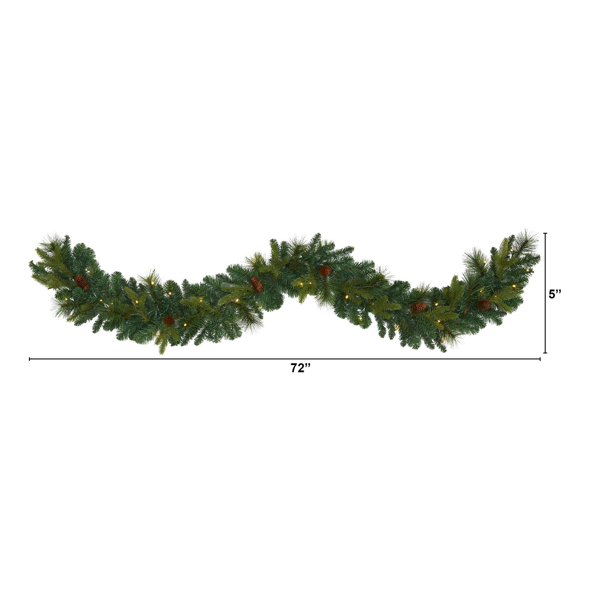 6ft. Pre-Lit Clear LED Mixed Pine & Pinecone Artificial Garland