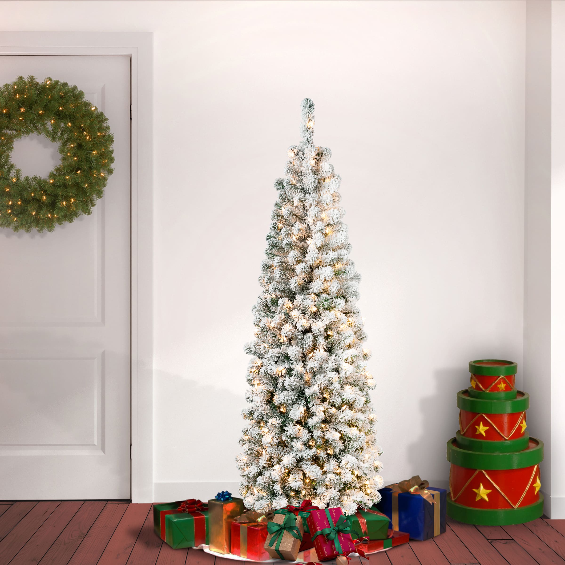 6ft. Pre-Lit Flocked Acacia Pencil Artificial Christmas Tree, Clear Lights