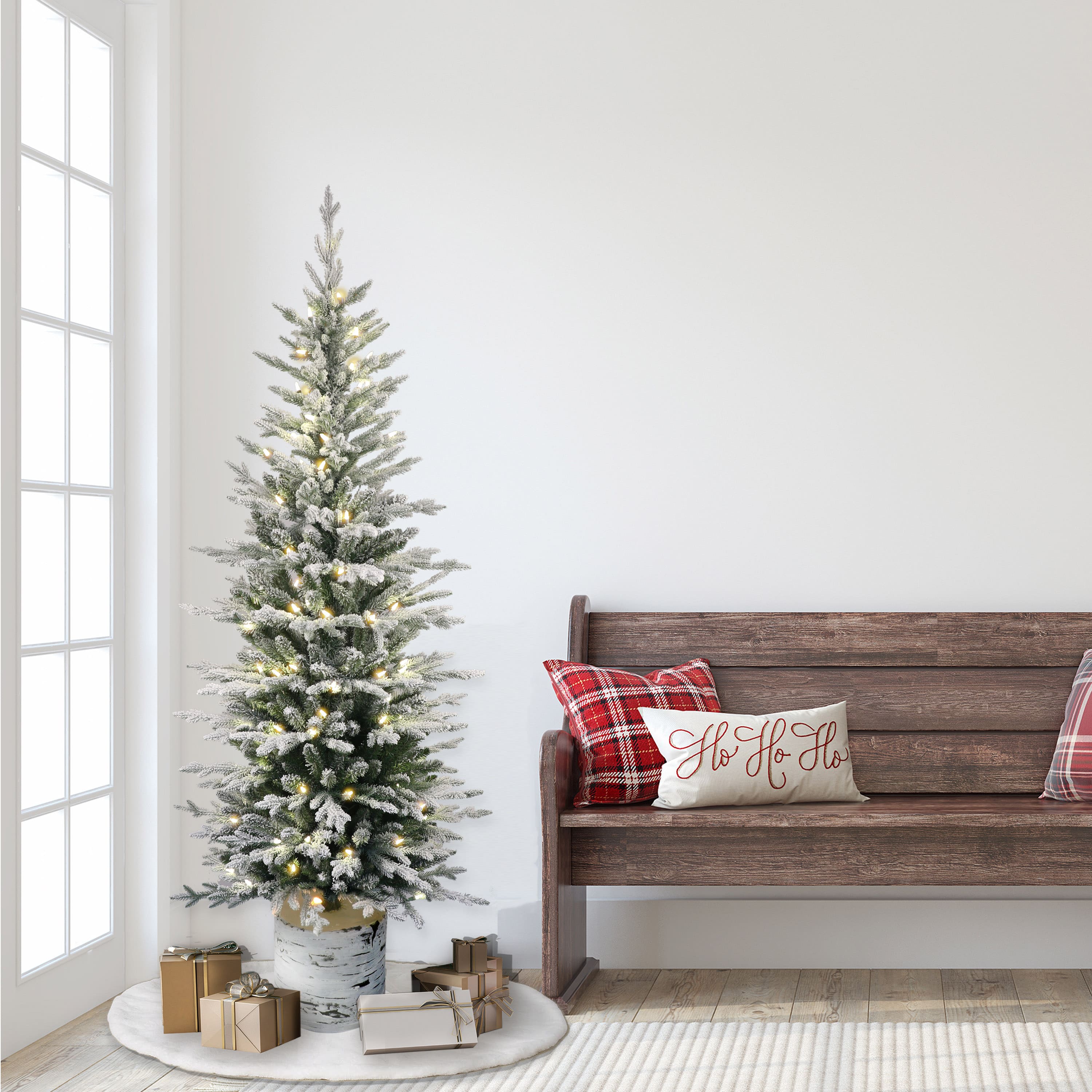 6ft. Pre-Lit Flocked Arctic Fir Pencil Artificial Christmas Tree, Warm White LED Lights