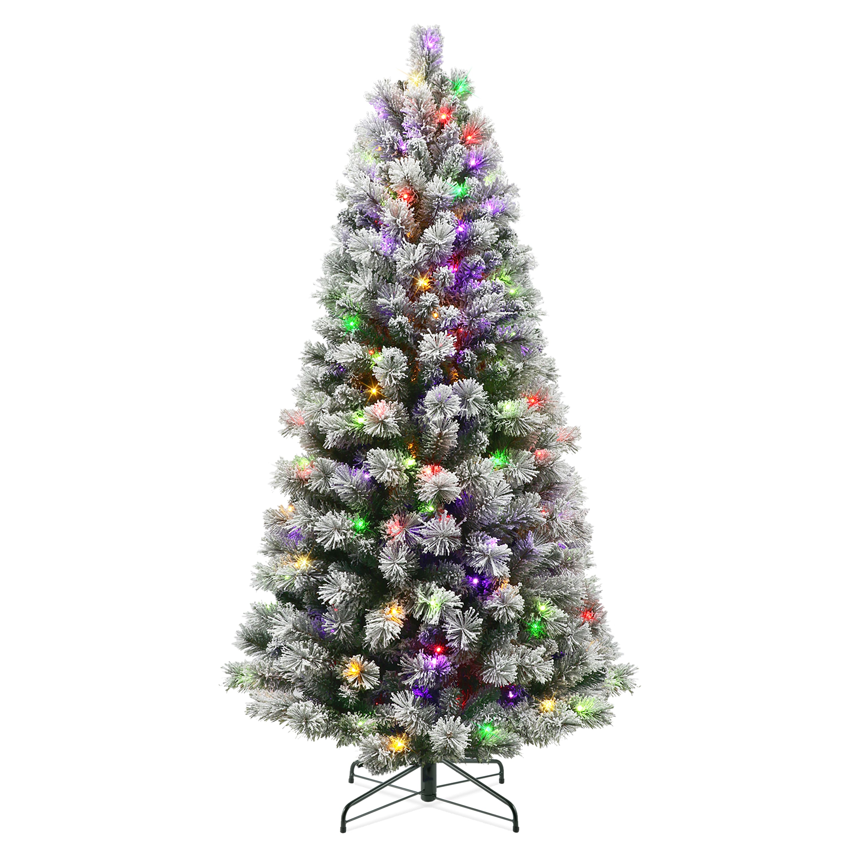6ft. Pre-Lit Flocked Montana Pine Artificial Christmas Tree, Dual-Color LED Lights