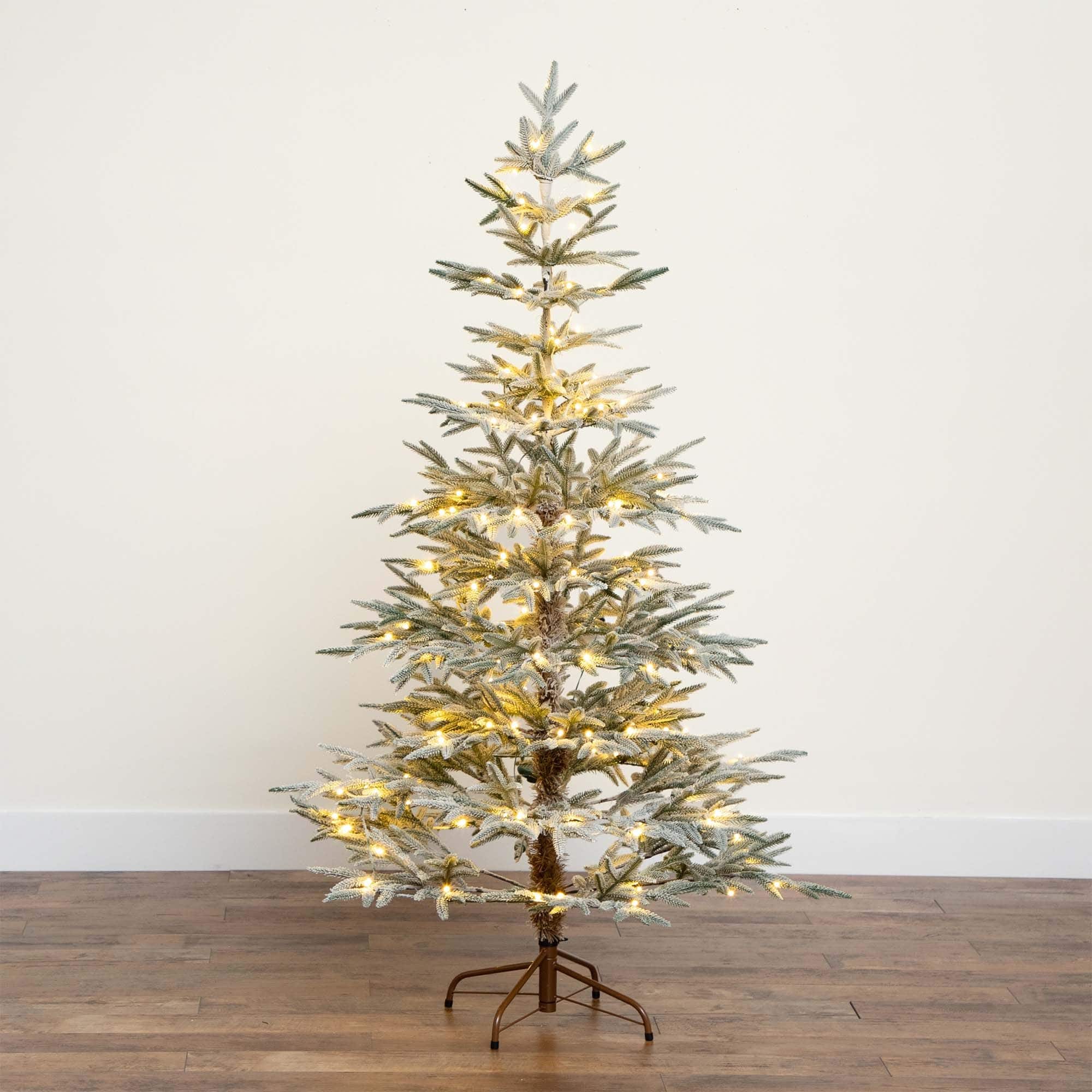 6ft. Pre-Lit Flocked Woodland Fir Artificial Christmas Tree, Warm White LED Lights