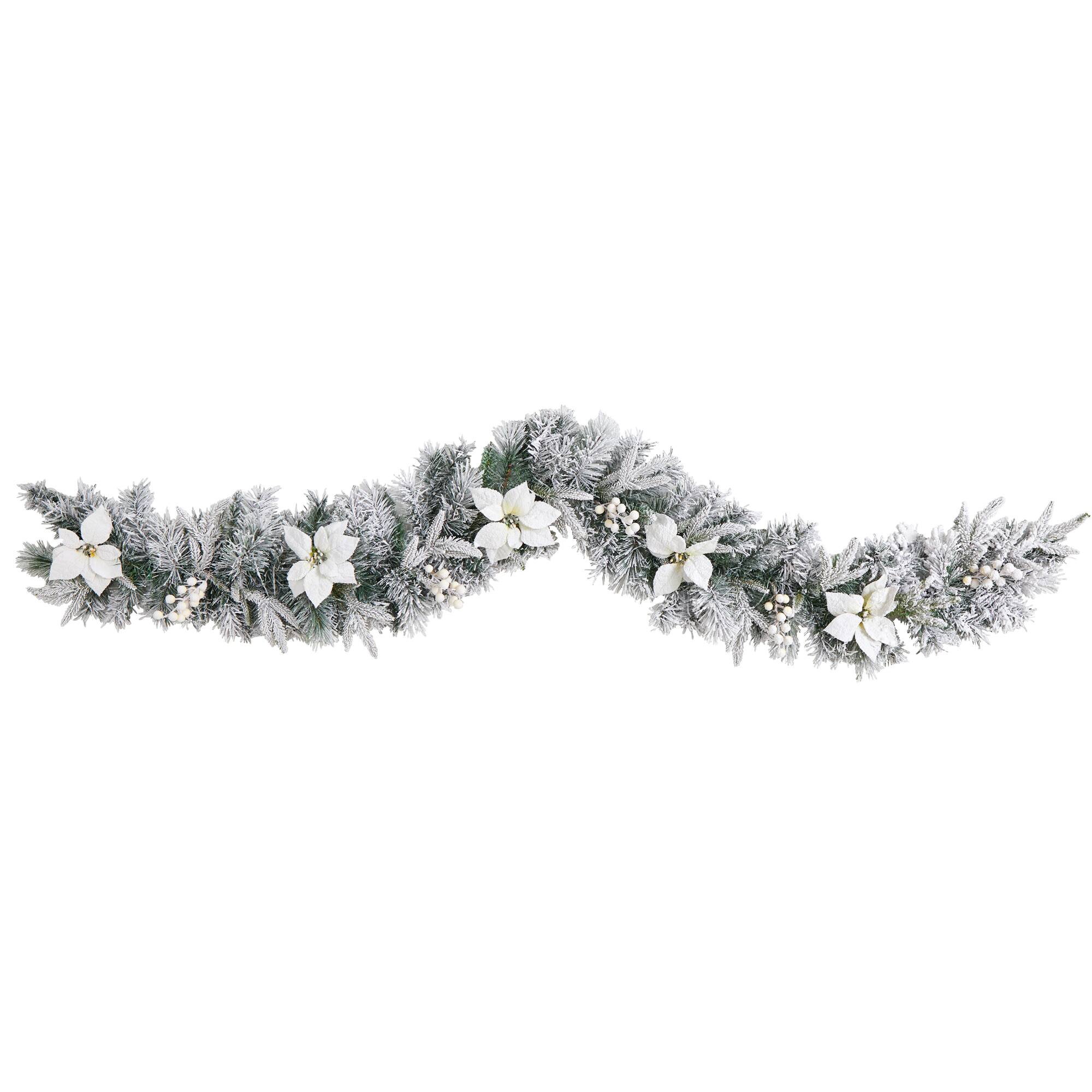 6ft. Pre-Lit LED Flocked Poinsettia & Berry Christmas Garland