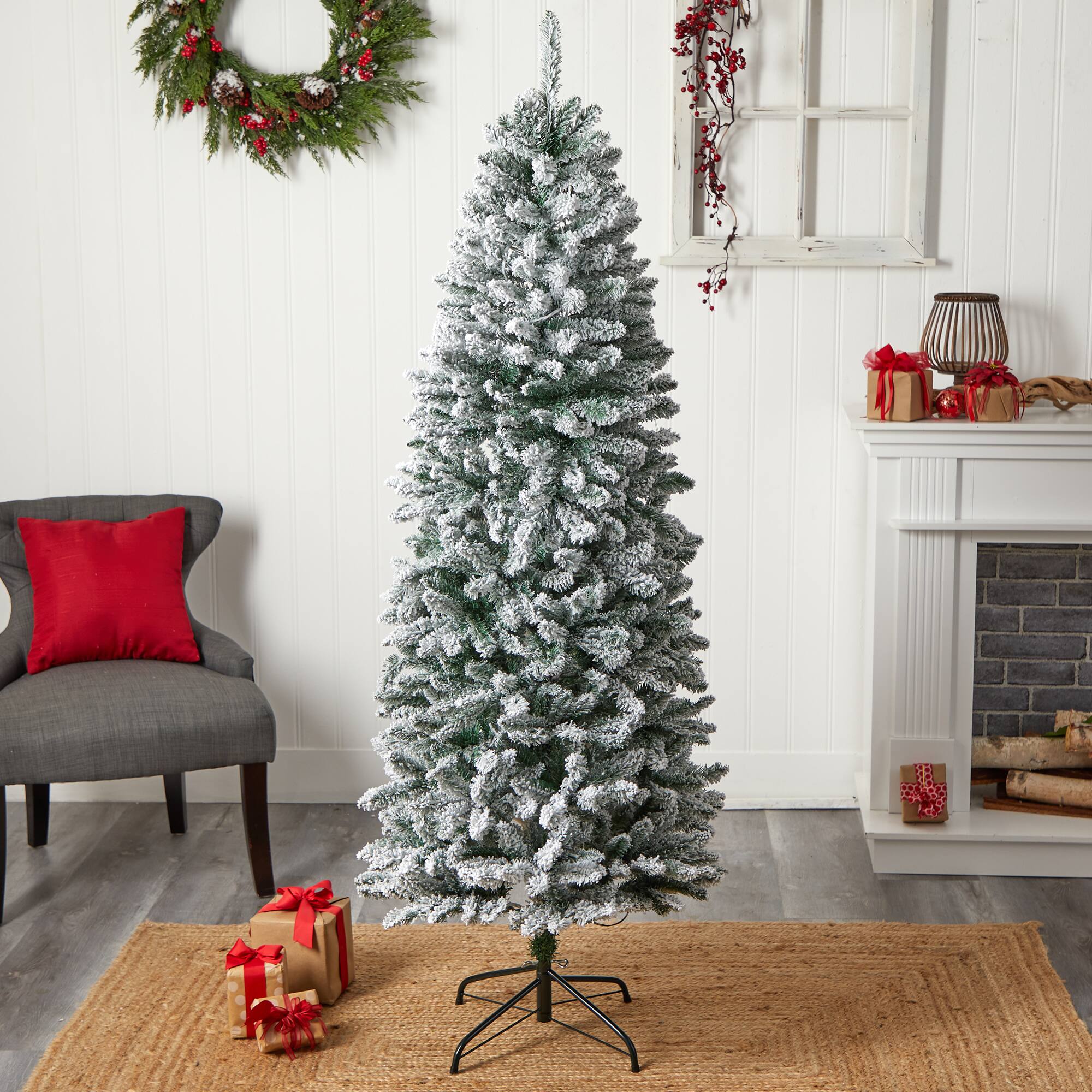 6ft. Pre-Lit Slim Flocked Montreal Fir Artificial Christmas Tree