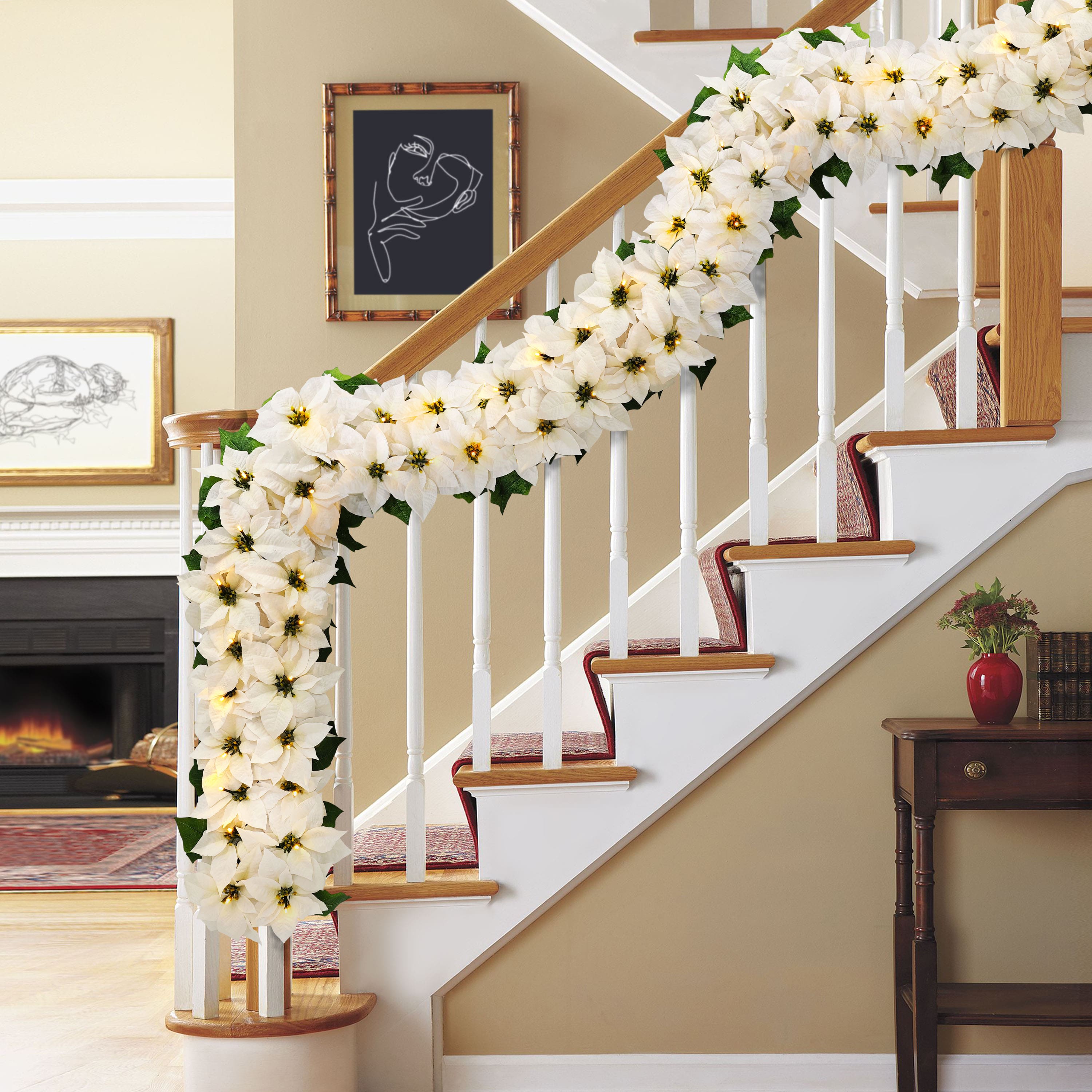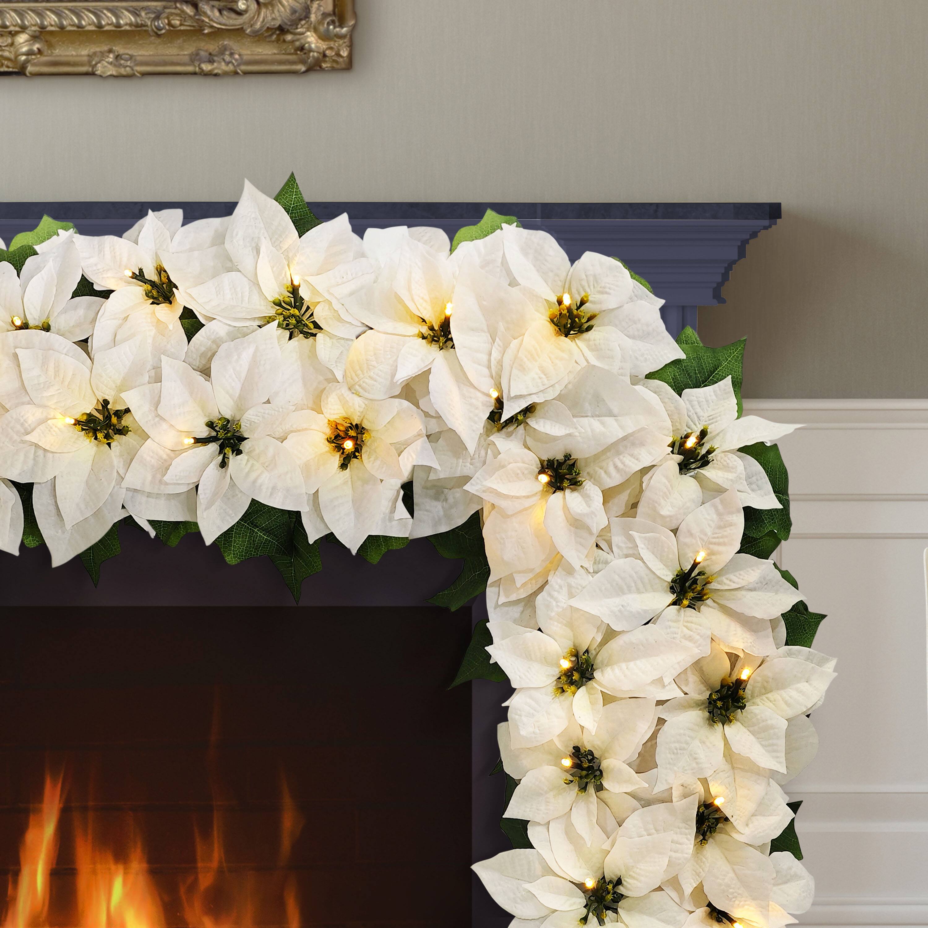 6ft. Pre-Lit White Poinsettia Artificial Garland