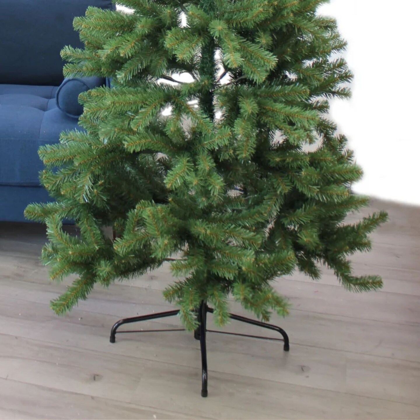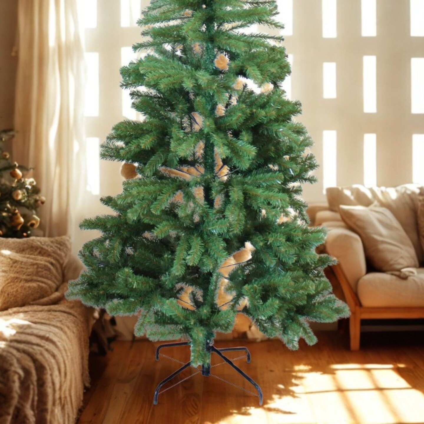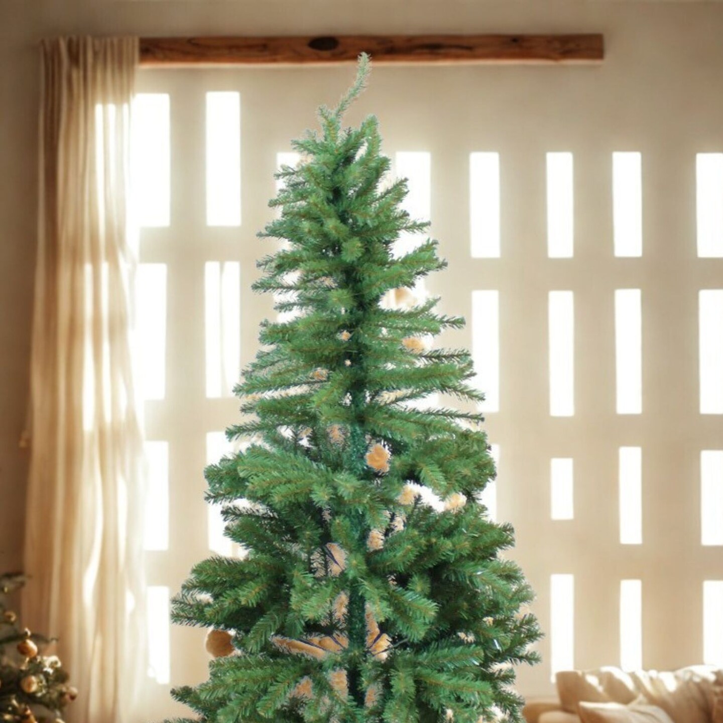 6ft PVC Evergreen Christmas Tree with Hinged Branches and Sturdy Metal Stand