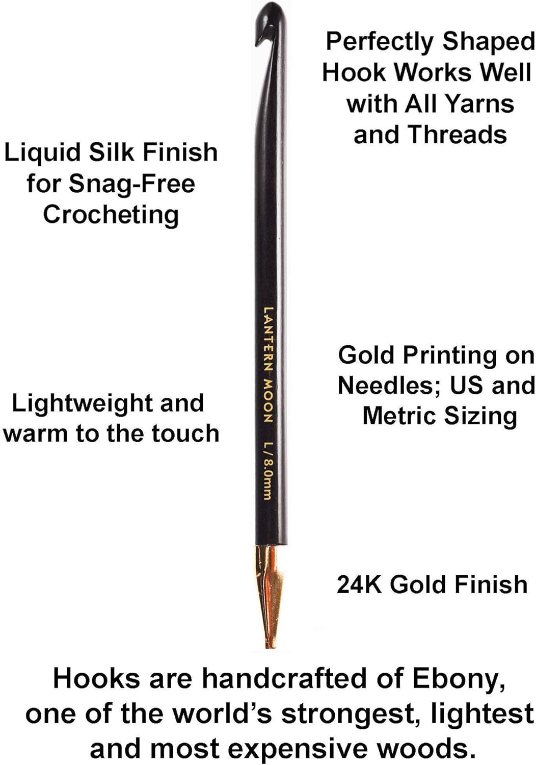 6-Inch Tunisian Interchangeable Crochet Hook Set Handcrafted Ebony