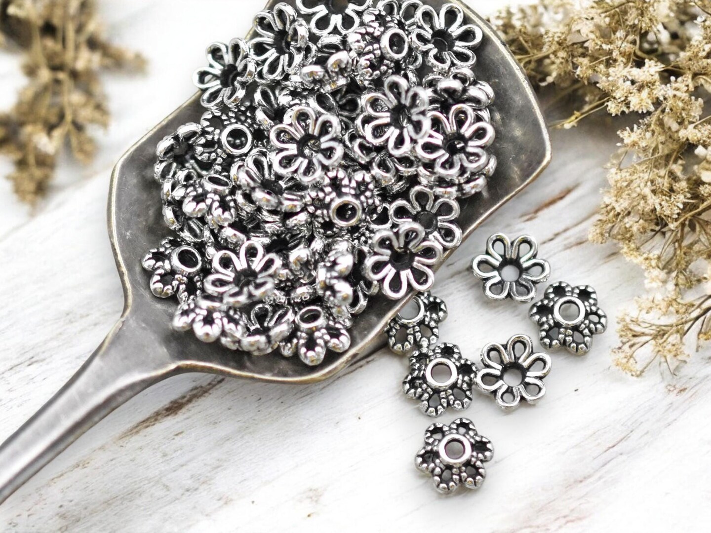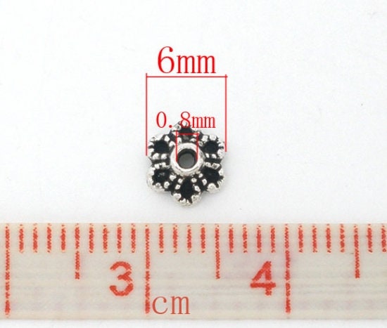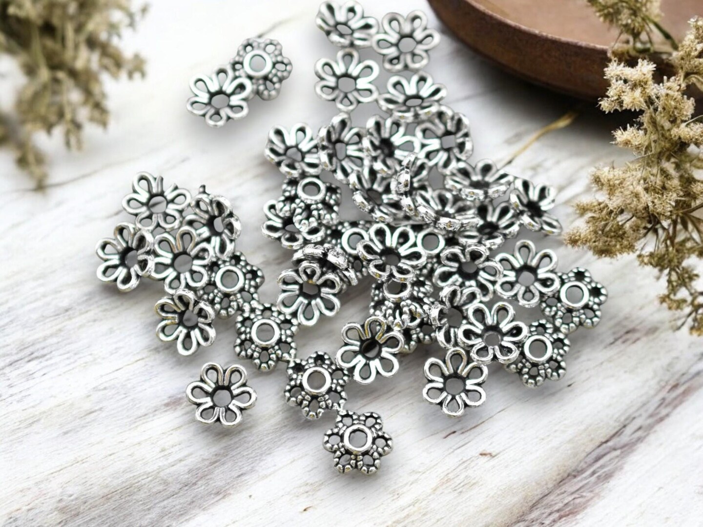 6mm Antique Silver Floral Bead Caps - 300pcs