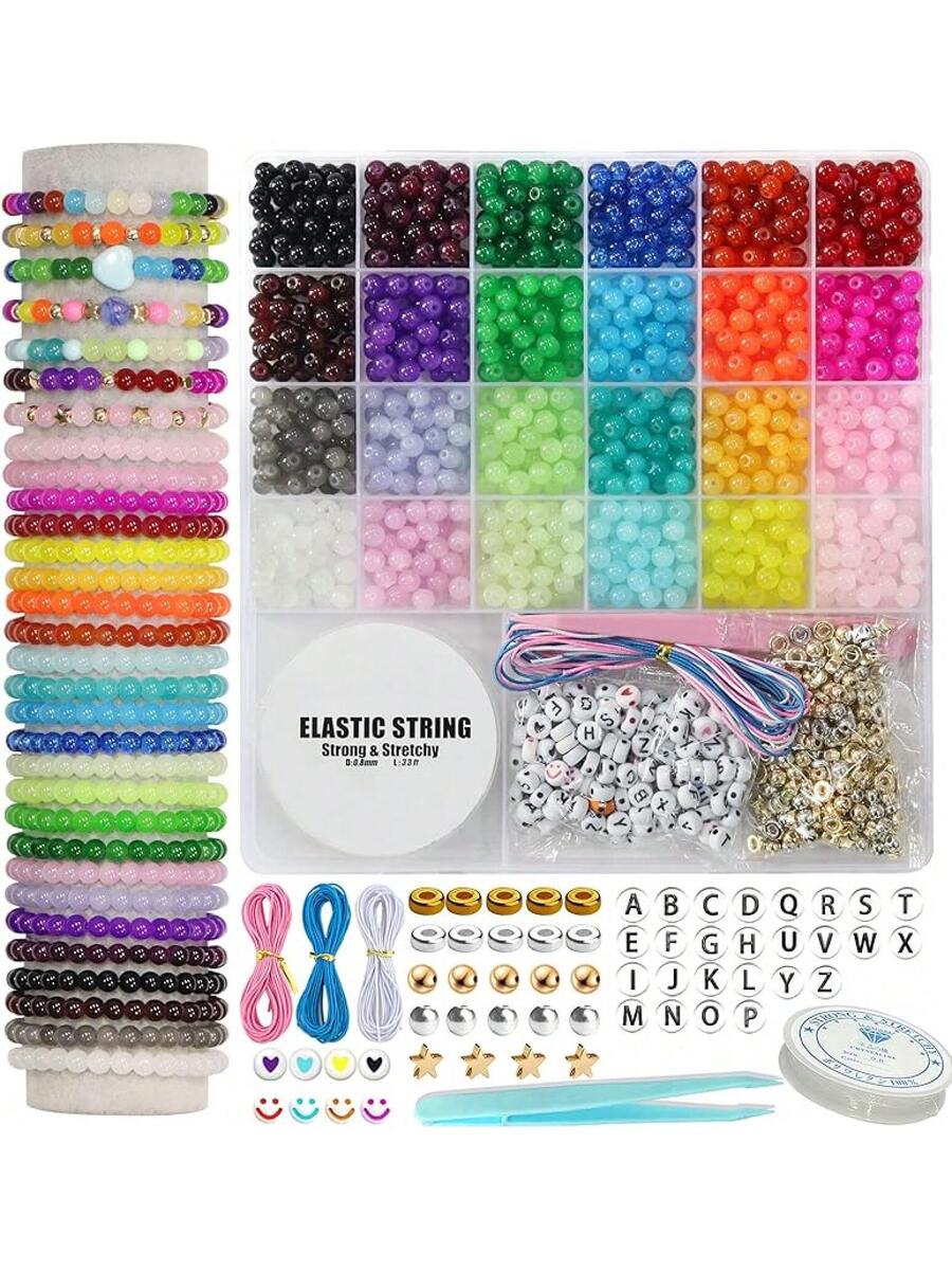 6mm Glass Bracelets 1400pcs 24 Colors, Round Glass Bracelet Making Kit Jewelry Making Kits