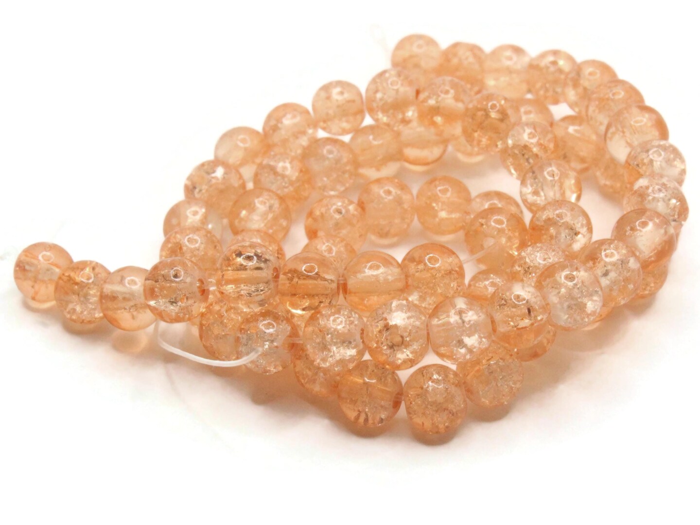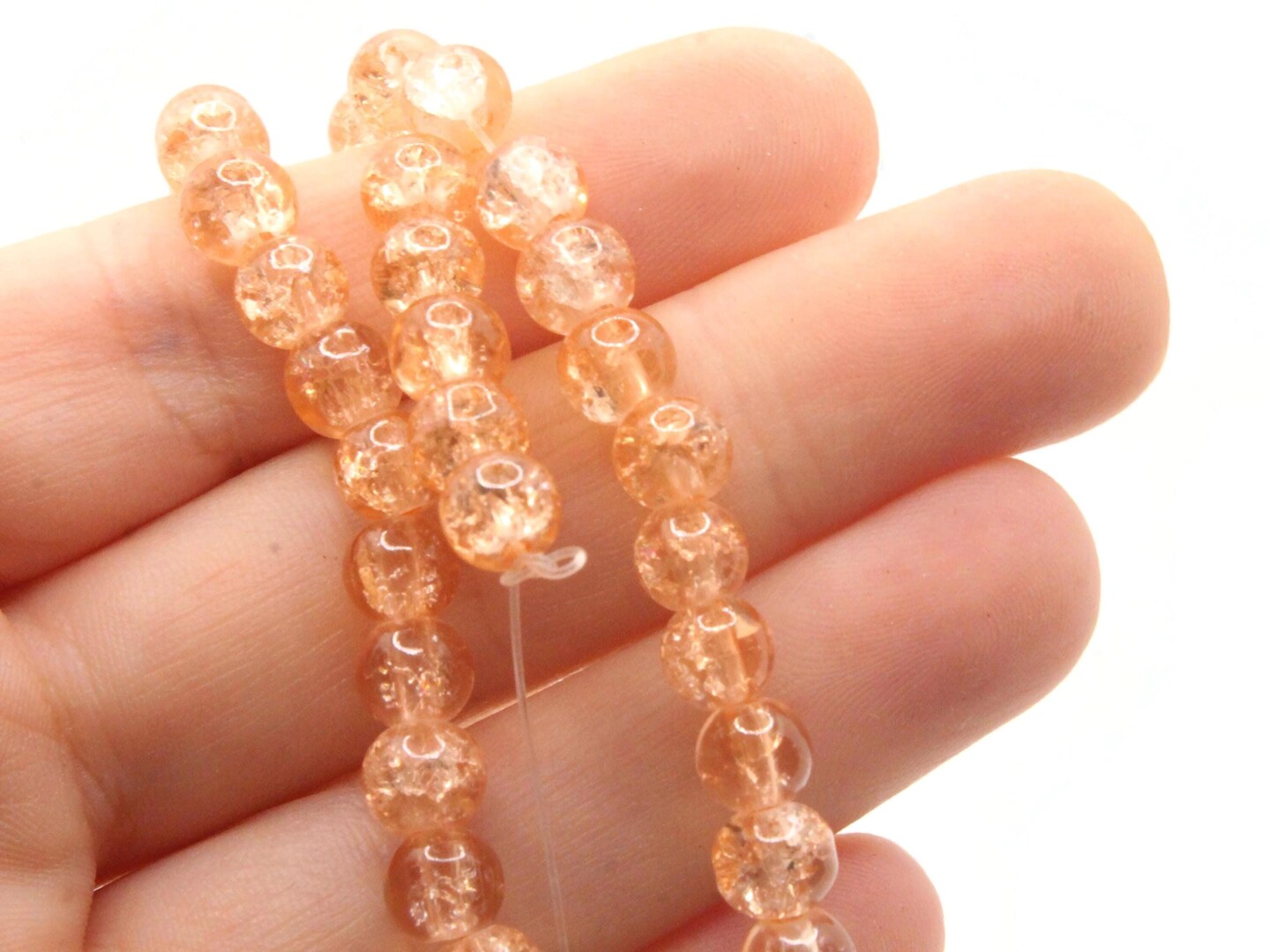 6mm Peach Pink Crackle Glass Smooth Round Beads