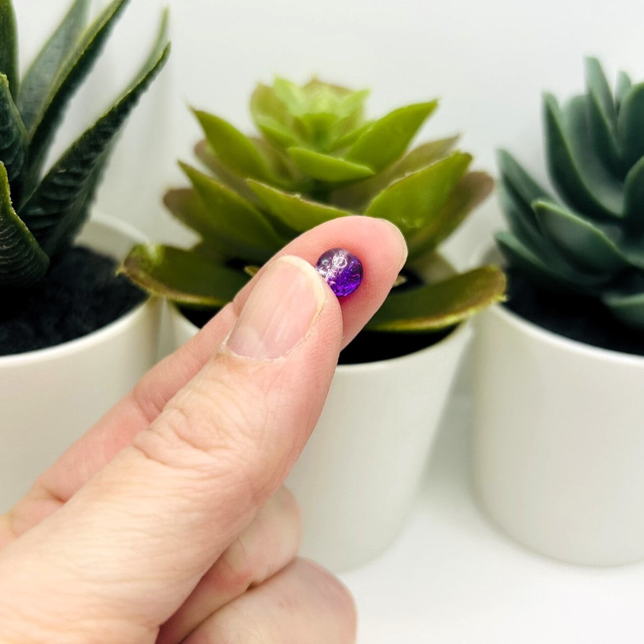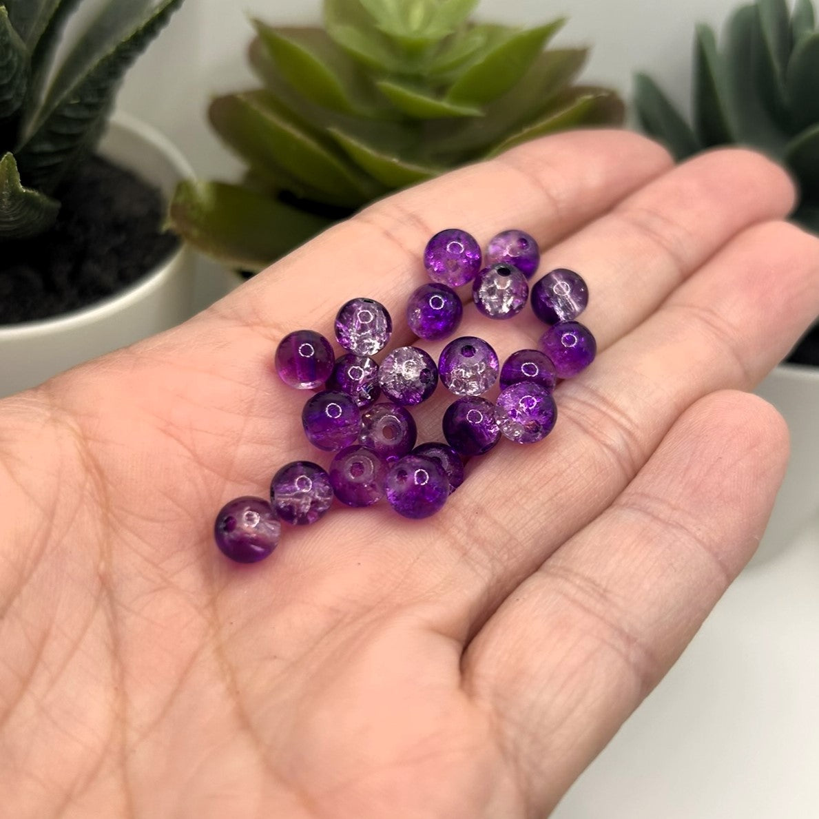 6mm Purple and Clear Glass Crackle Beads