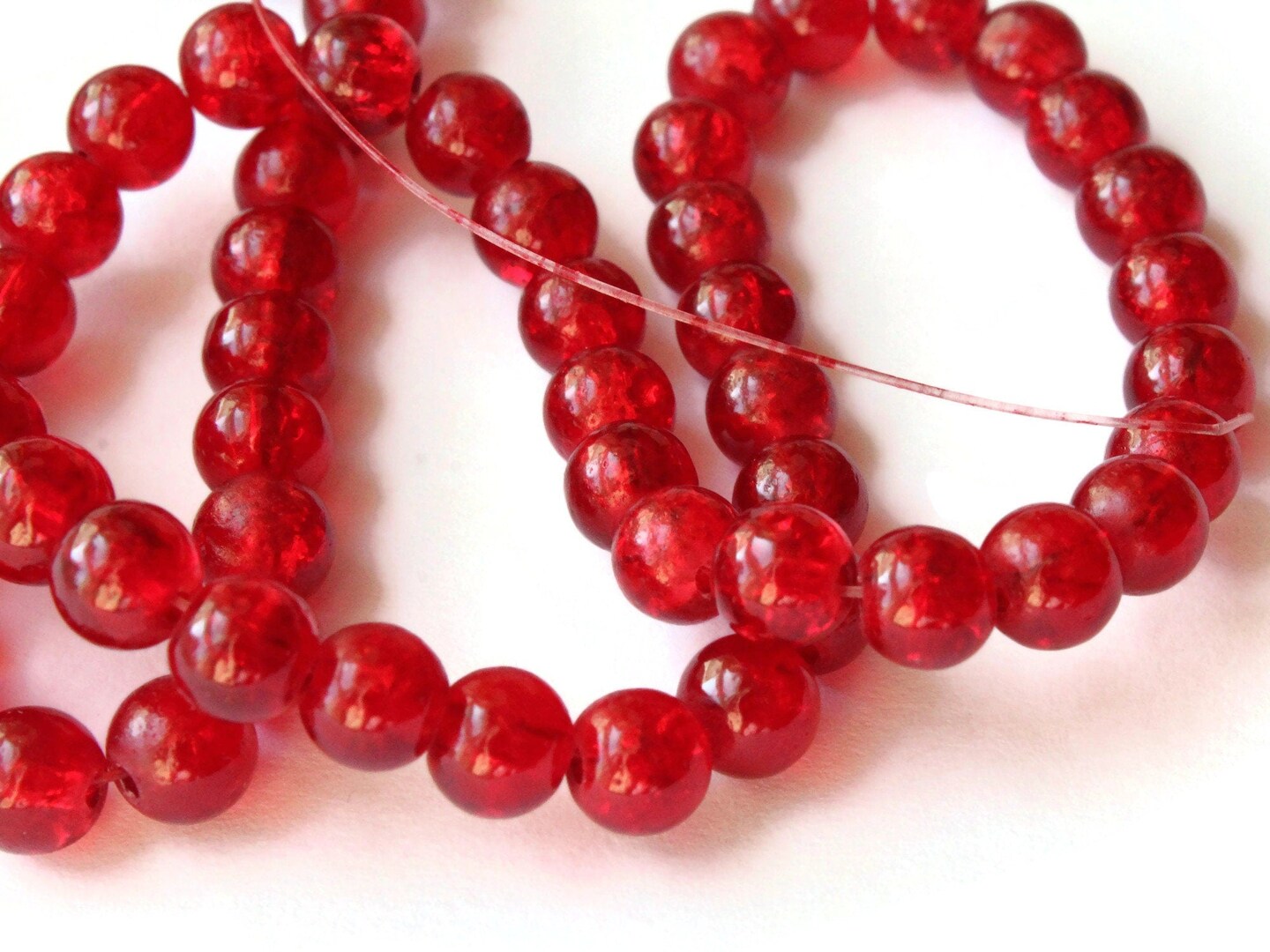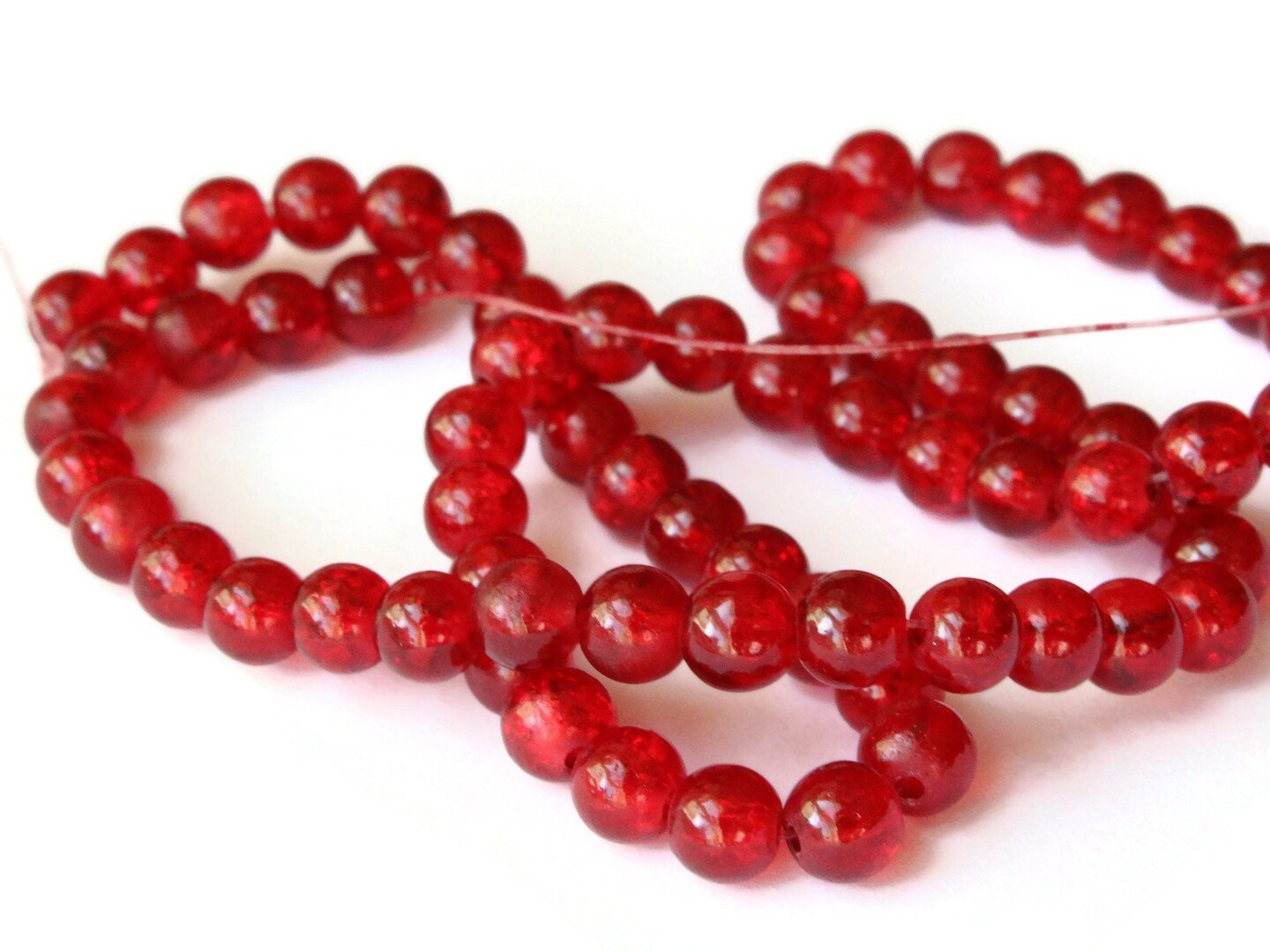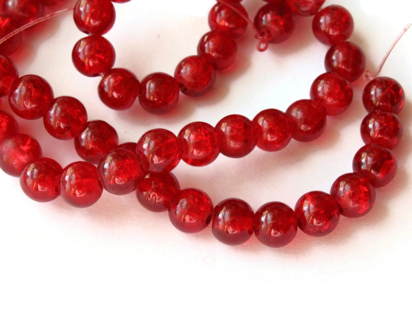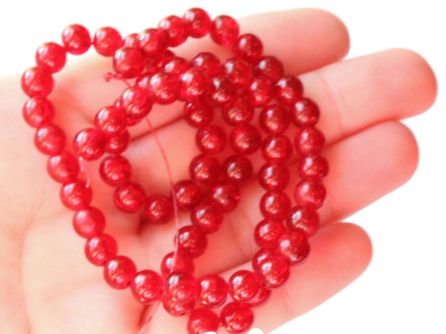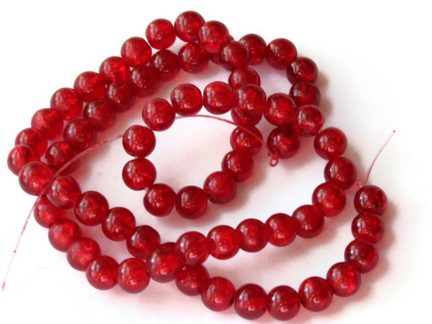 6mm Red Crackle Glass Round Beads