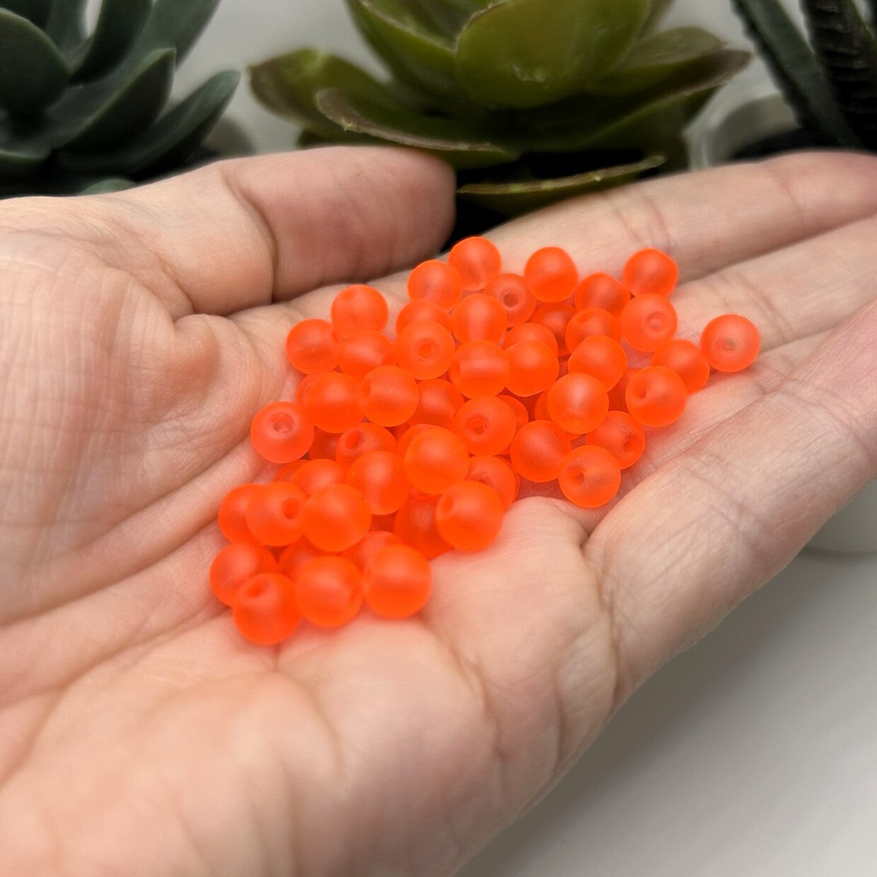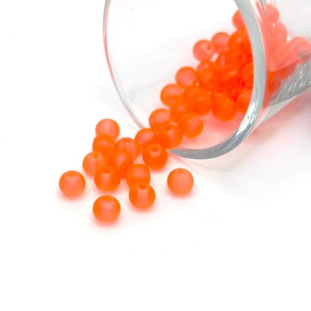 6mm Red Orange Frosted Glass Beads