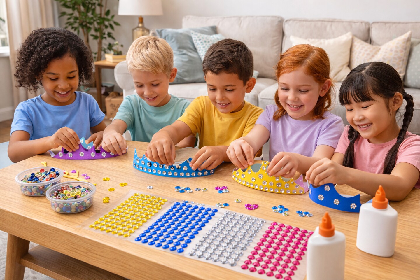6mm Round Gemstone Stickers 190 Pcs/Pack – Self-Adhesive Rhinestone Craft Gems (Gold, Blue, Silver, Pink)