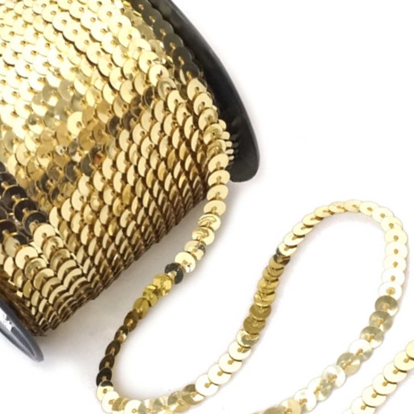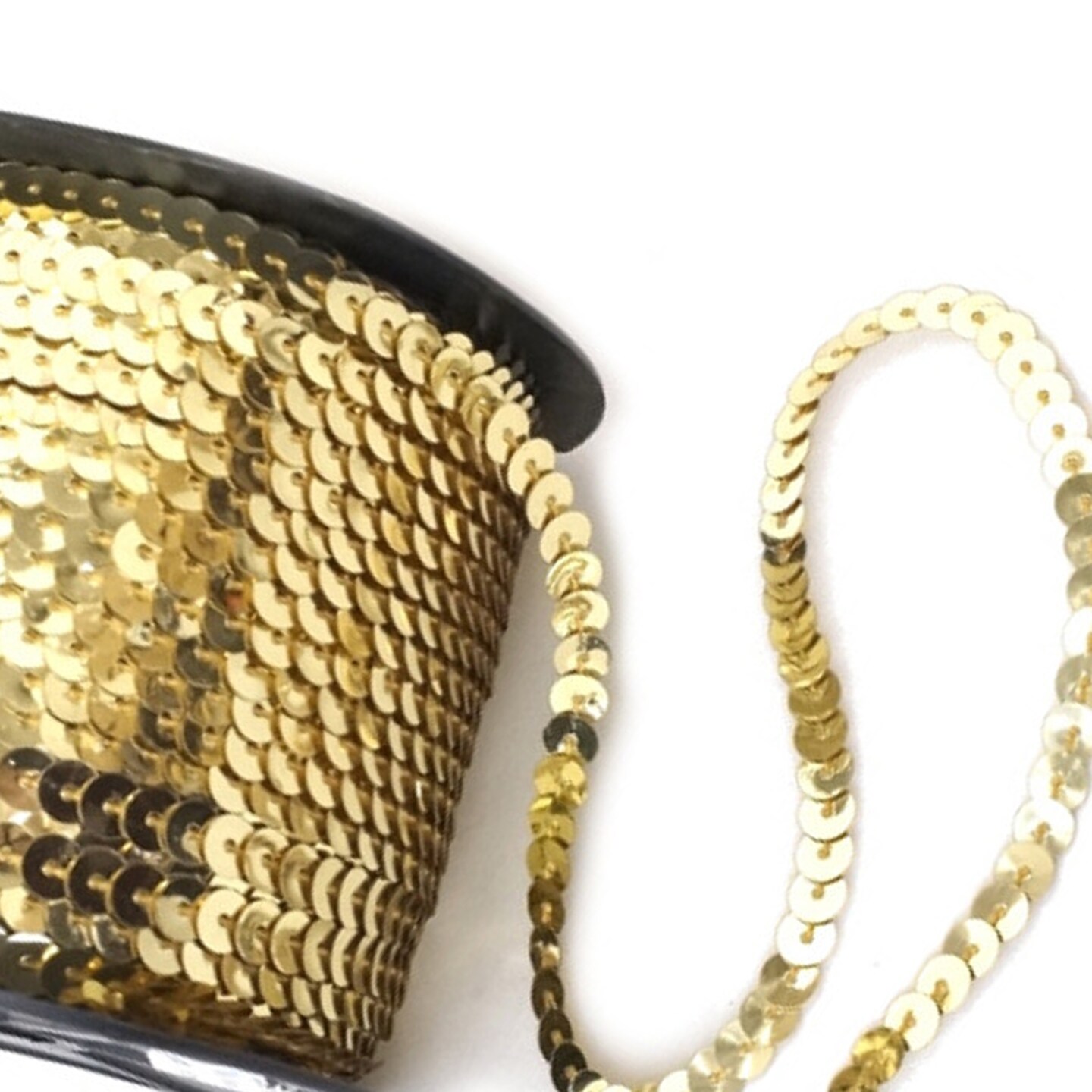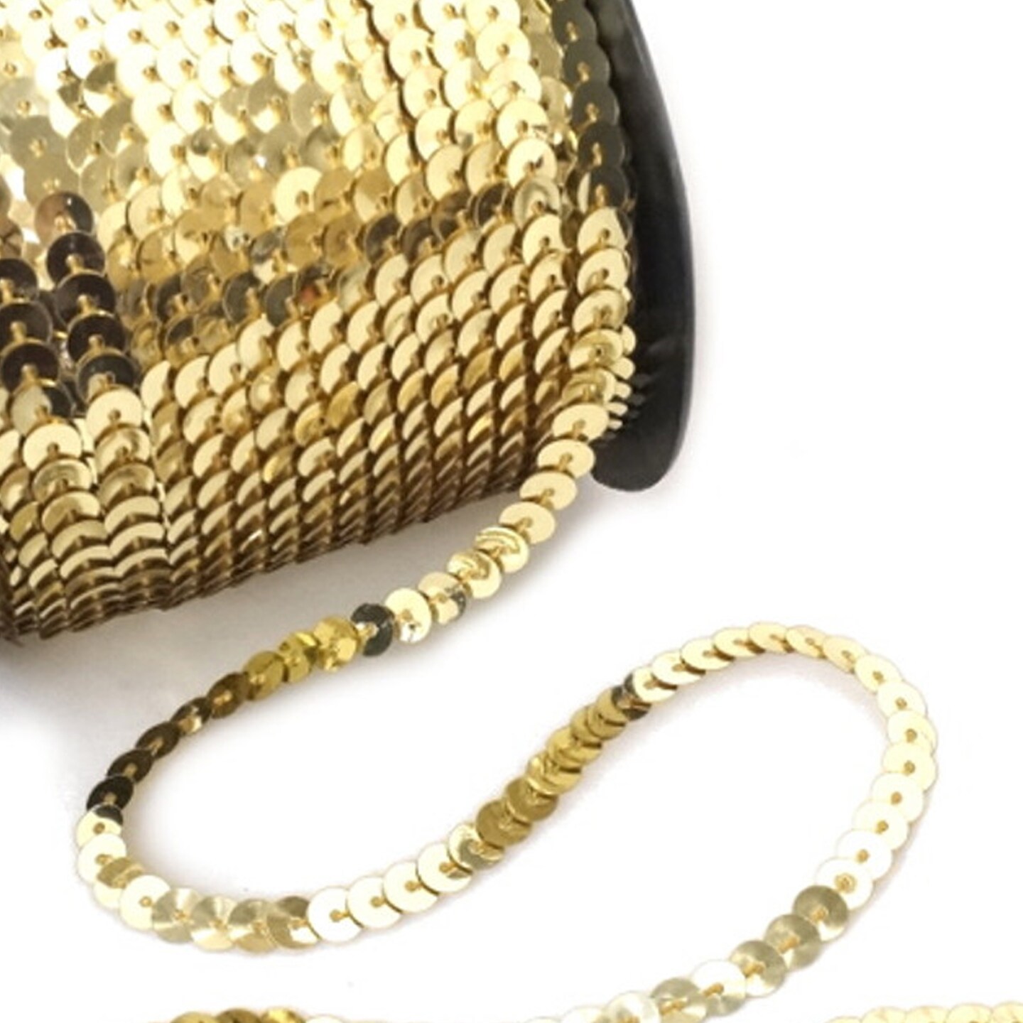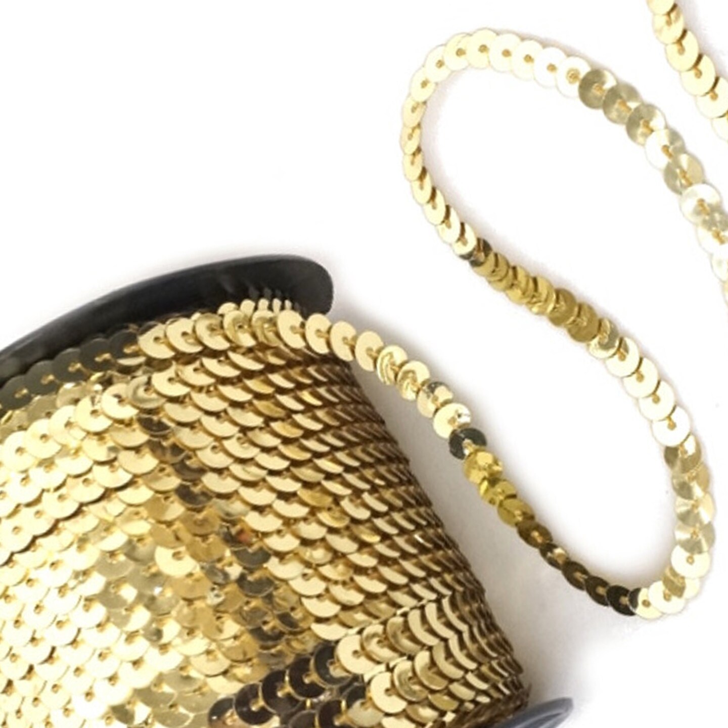 6mm x 100 Yards Gold Flat Metallic Cord Strung Sequin Trim
