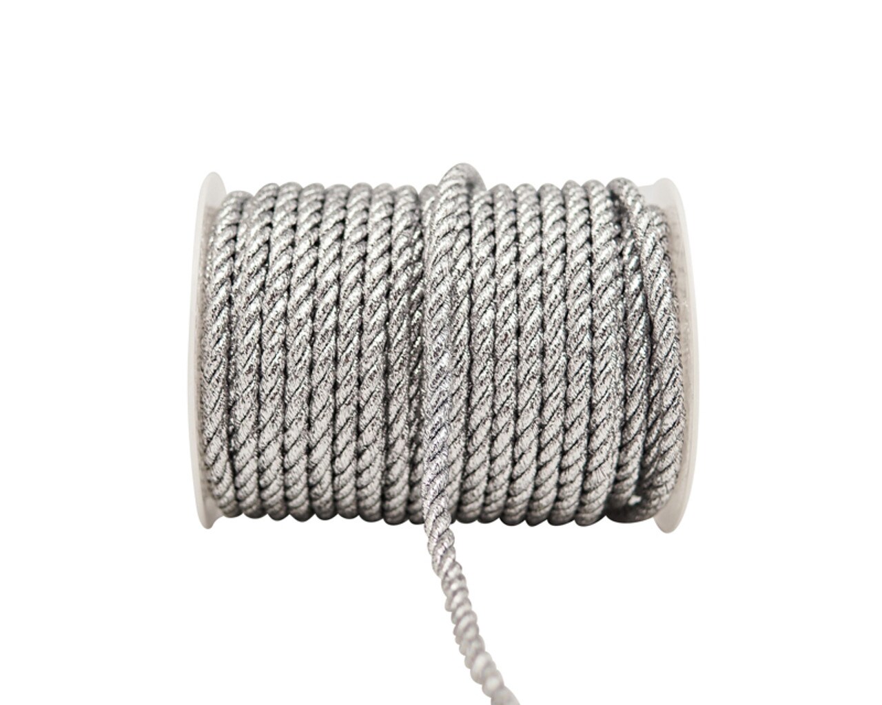 6mm x 25 Yards Silver Metallic Rope Trim Pack of 5 Spools