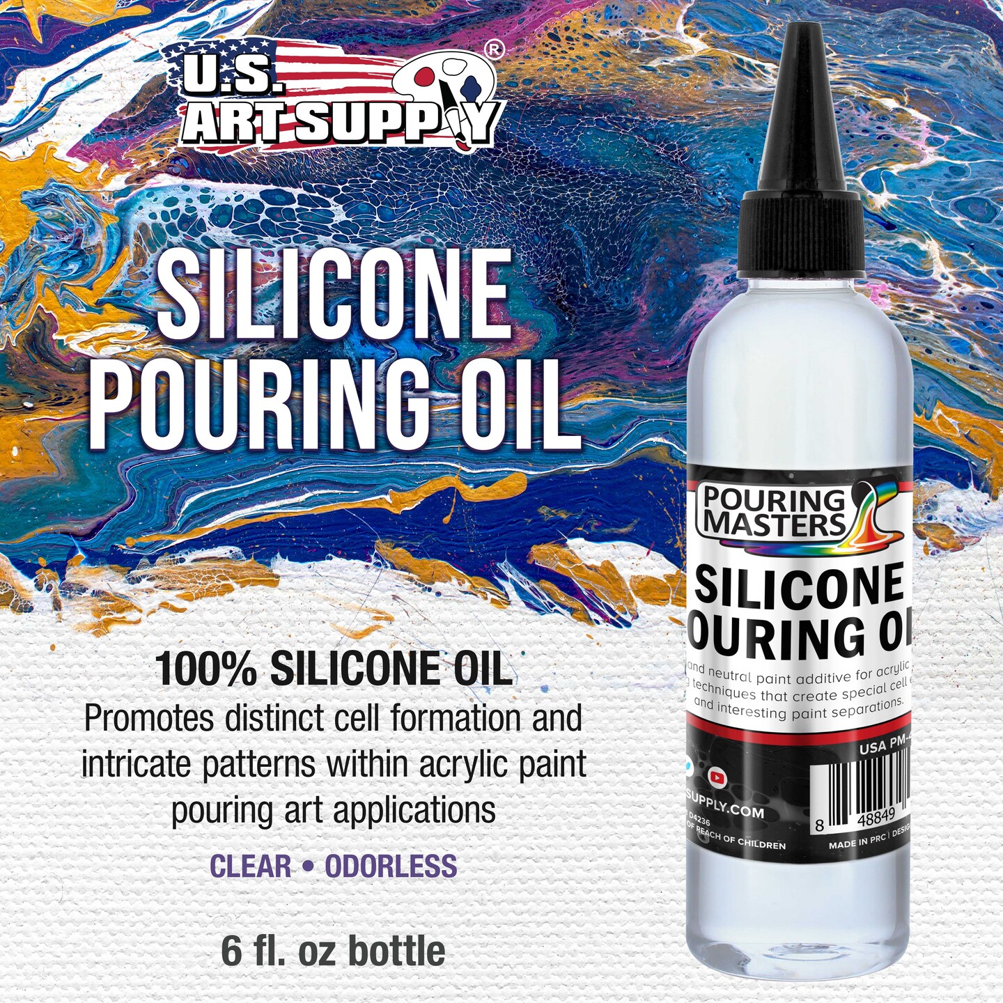 6-Ounce Silicone Pouring Oil - 100% Silicone Oil Pouring Medium for Acrylic Paint, Clear, Odorless Cell Creation Medium