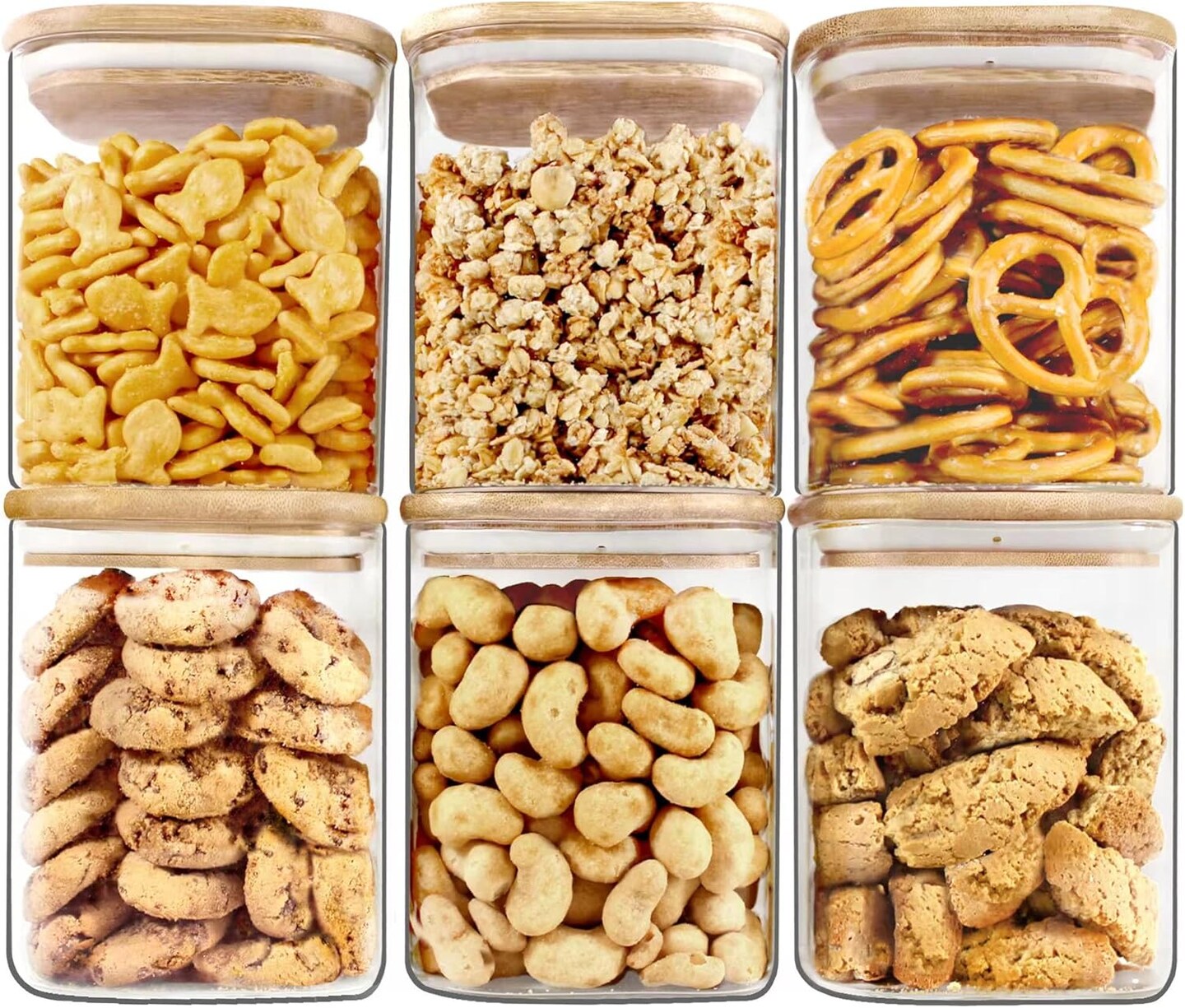 6-Pack 28oz Square Glass Jars with Airtight Bamboo Lids for Food Storage