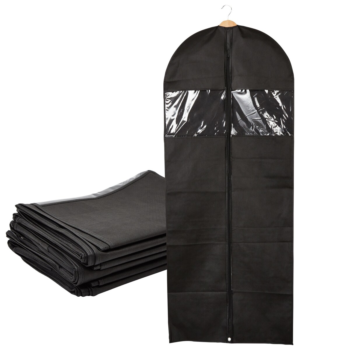 6-Pack Black Garment Bags with Zippers and Windows, Clothes Bags for Closet Storage and Travel (24x60 in)