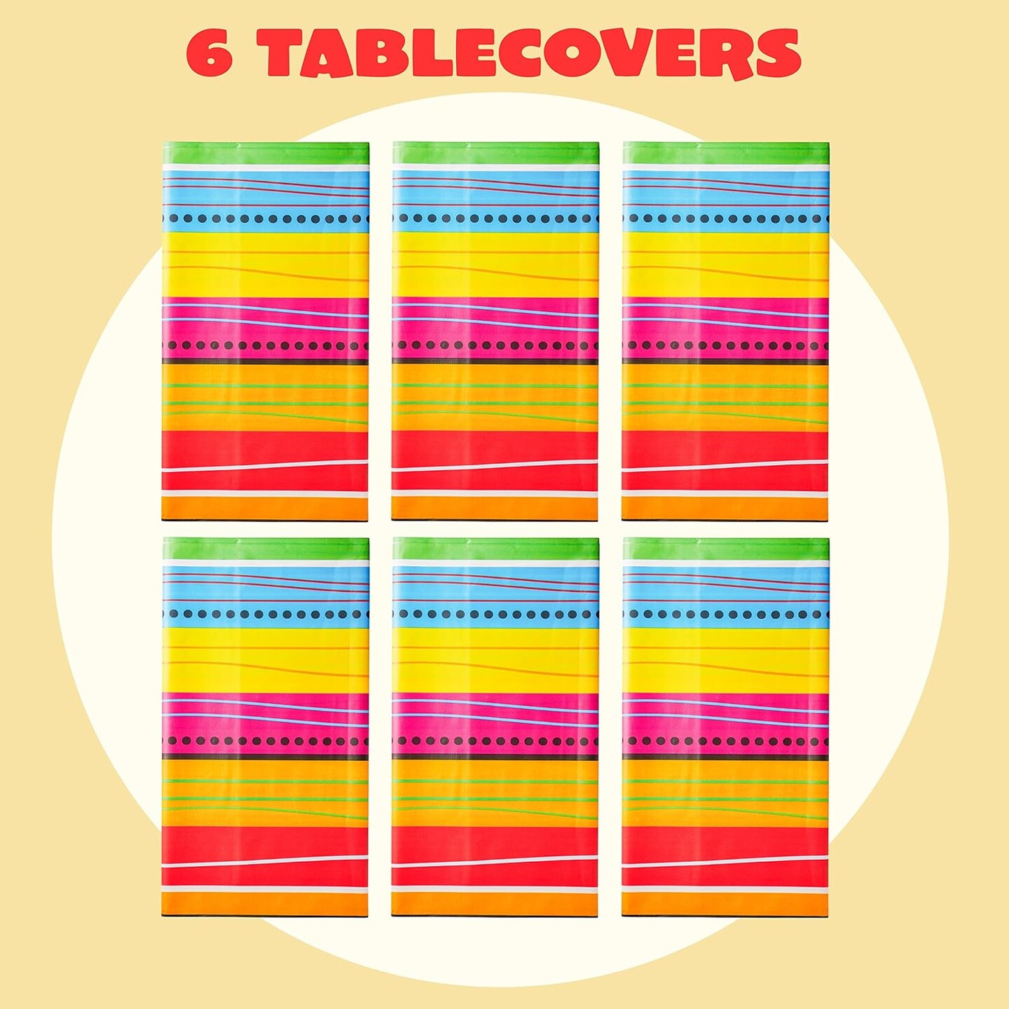 6-Pack Cinco de Mayo Tablecover 54x108in – Multi-Color Plastic Fiesta Party Decor