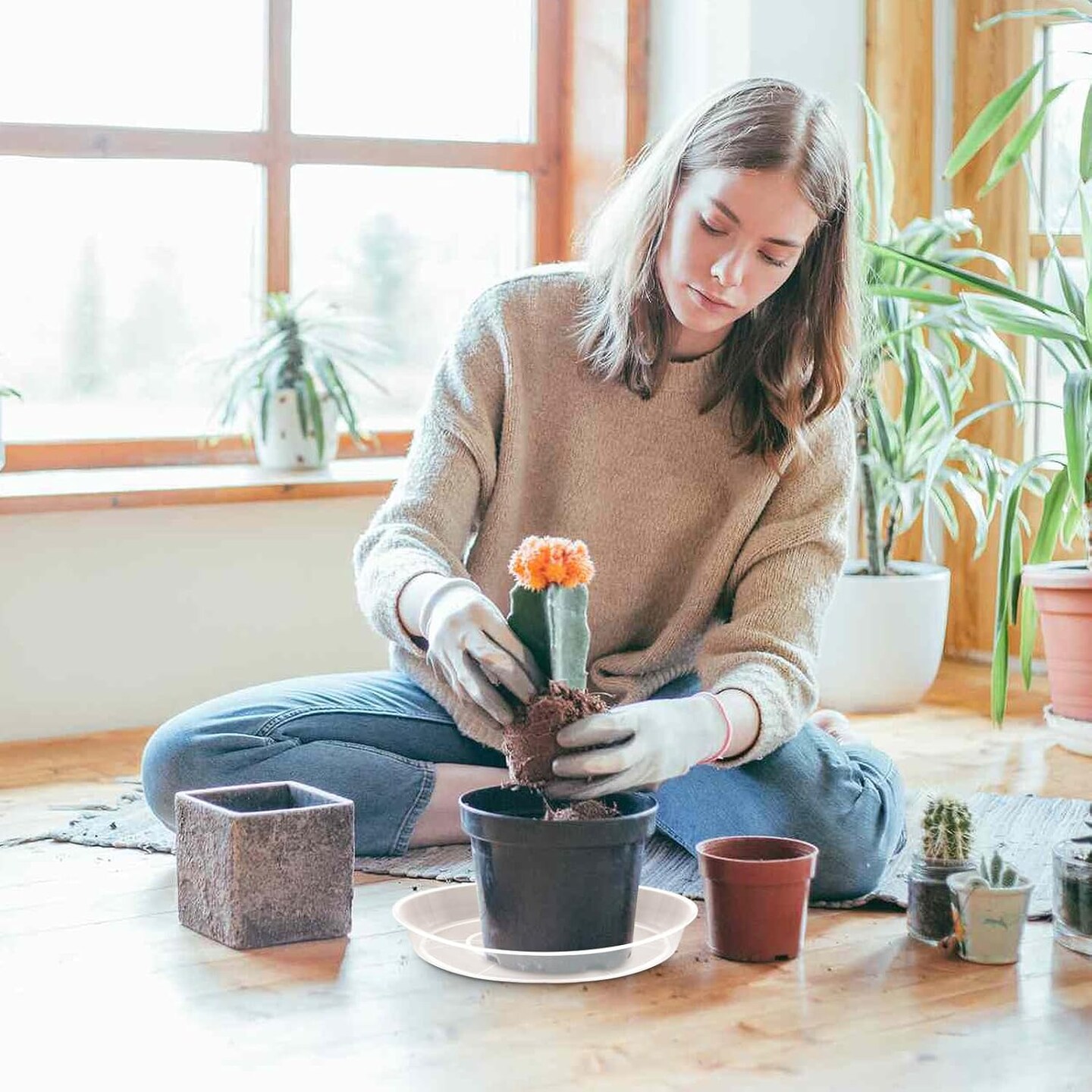 6-Pack Clear Plant Saucers – Durable Water Catcher Trays for Indoor & Outdoor Planters, Sturdy Plastic Base Plates for Flower Pots, 6.2"