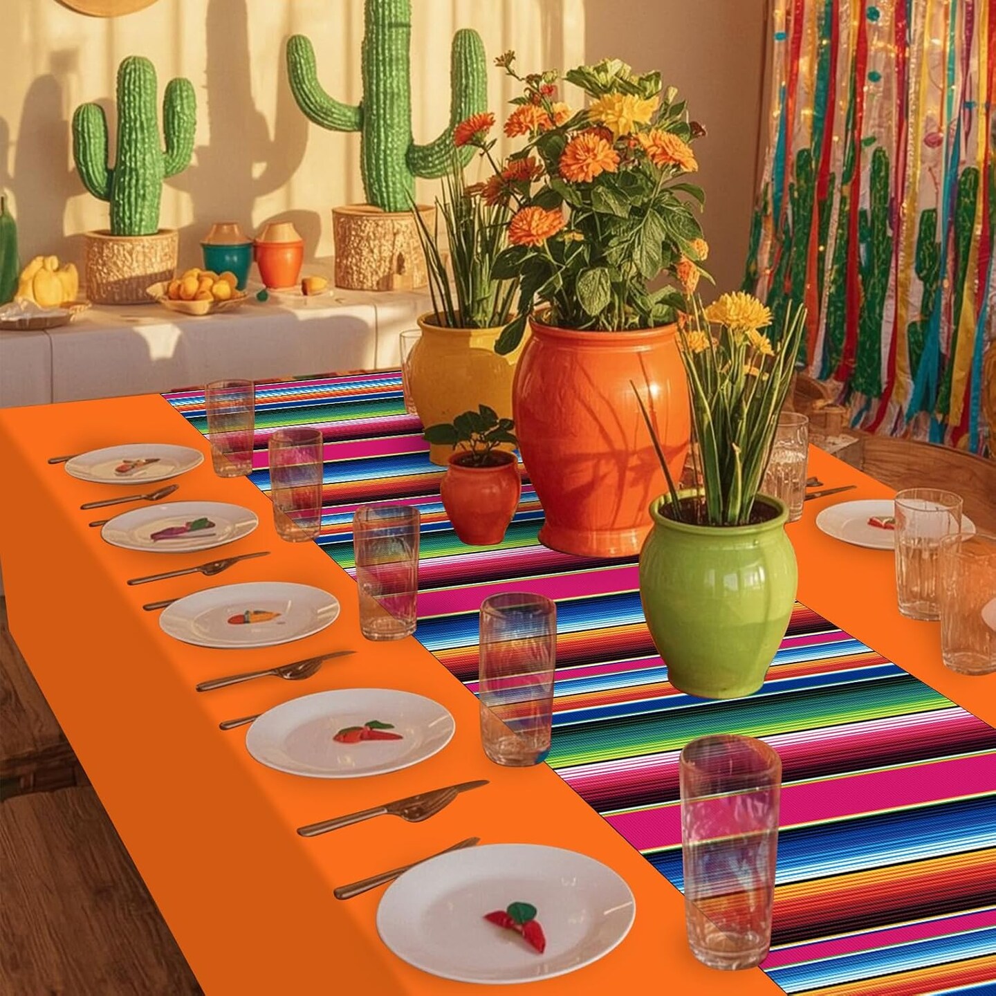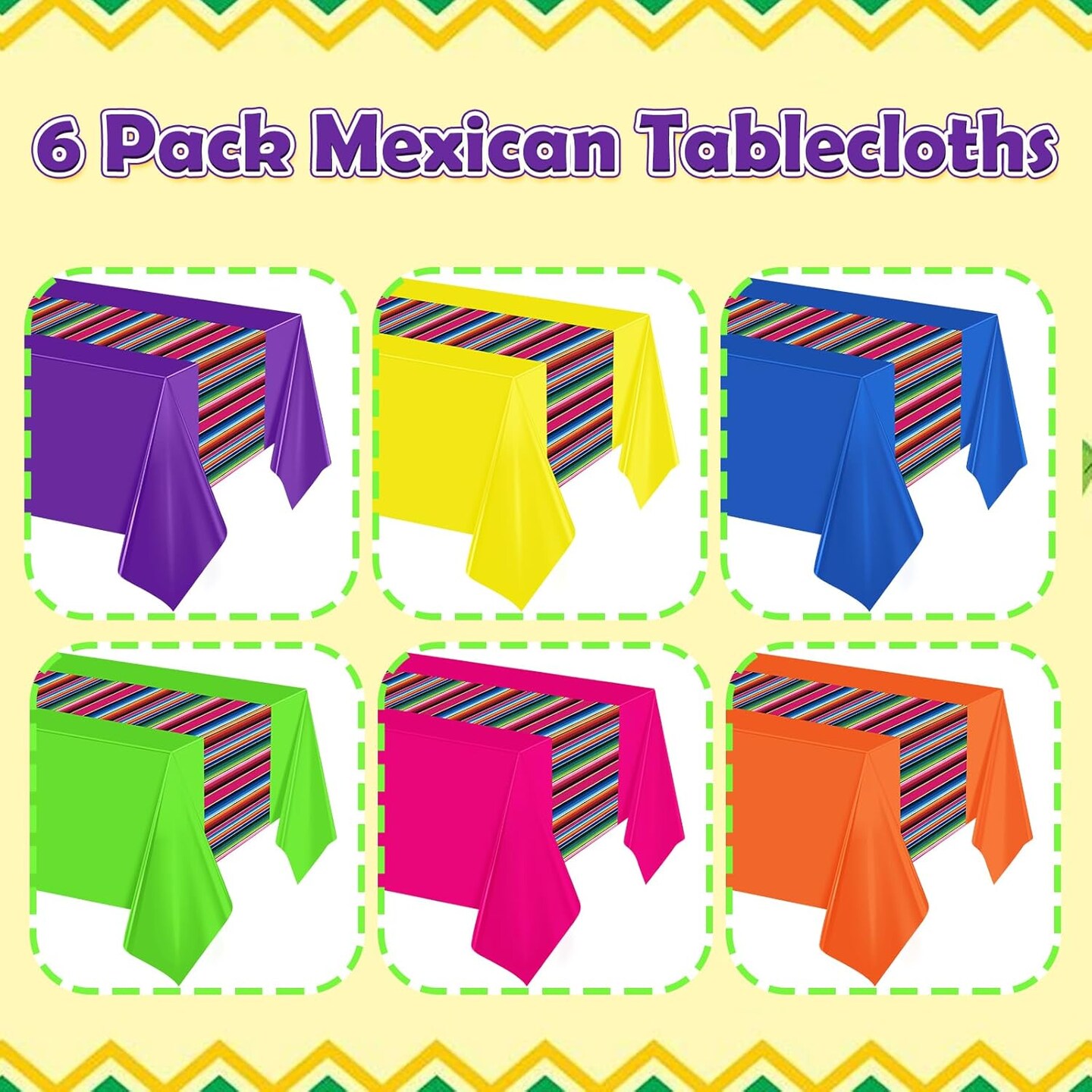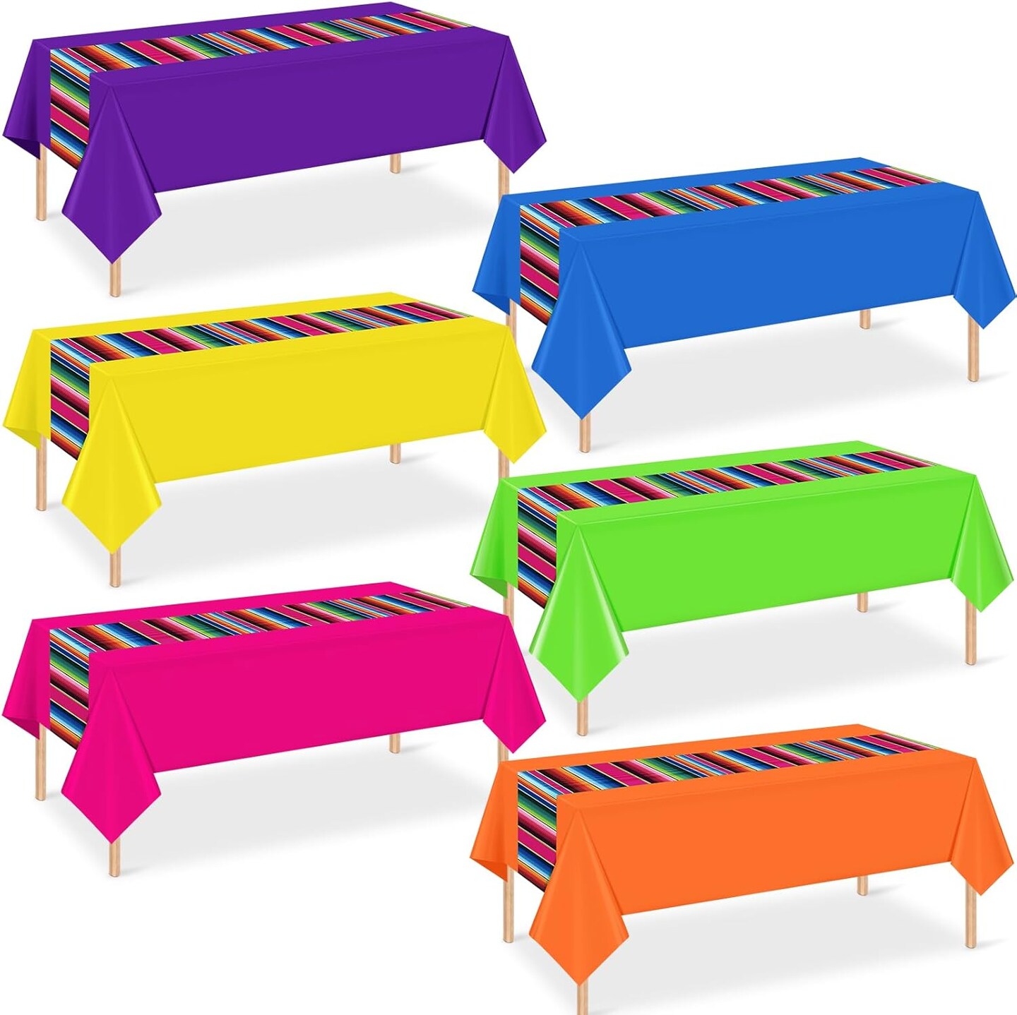 6-Pack Mexican Fiesta Plastic Tablecloths – 108" x 54" Disposable Rainbow Stripe Table Covers for Cinco de Mayo, Taco Night, Wedding & Birthday Party Decorations