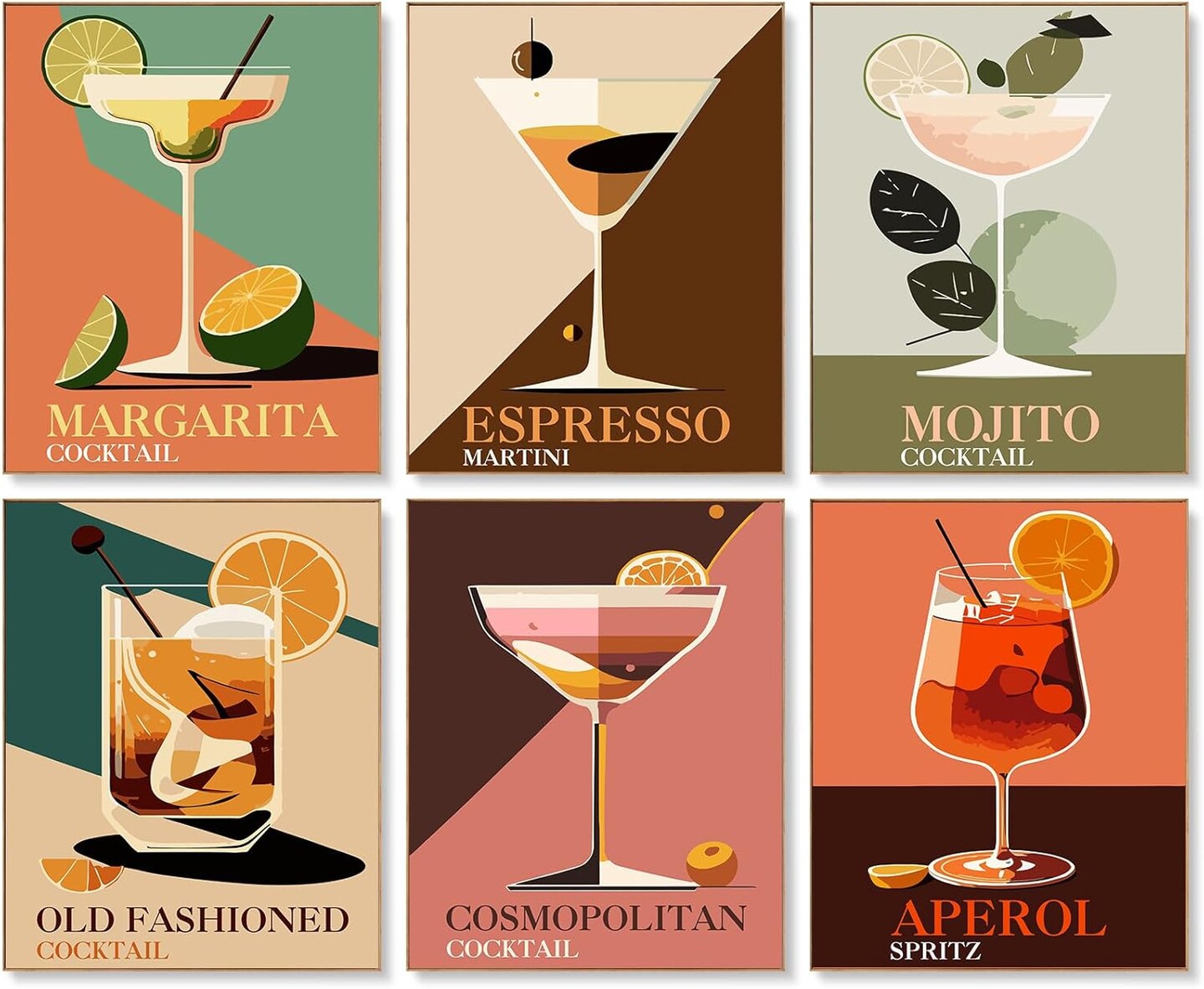 6-Pack Paint by Numbers Kit for Adults – 8"x10" Cocktail Canvas DIY Acrylic Painting Kits – Beginner-Friendly, Fun Home Decor & Gift Set (BOP6PNP01)