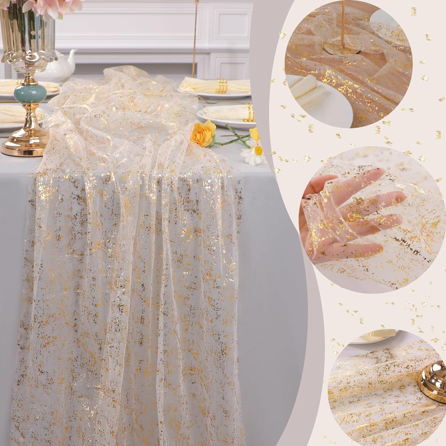 6Pcs 10 Ft Gold Table Runners - Sheer Chiffon Tulle Cheesecloth (Gold)