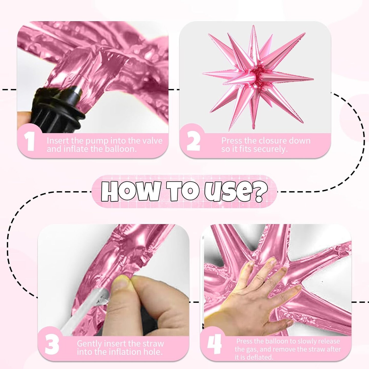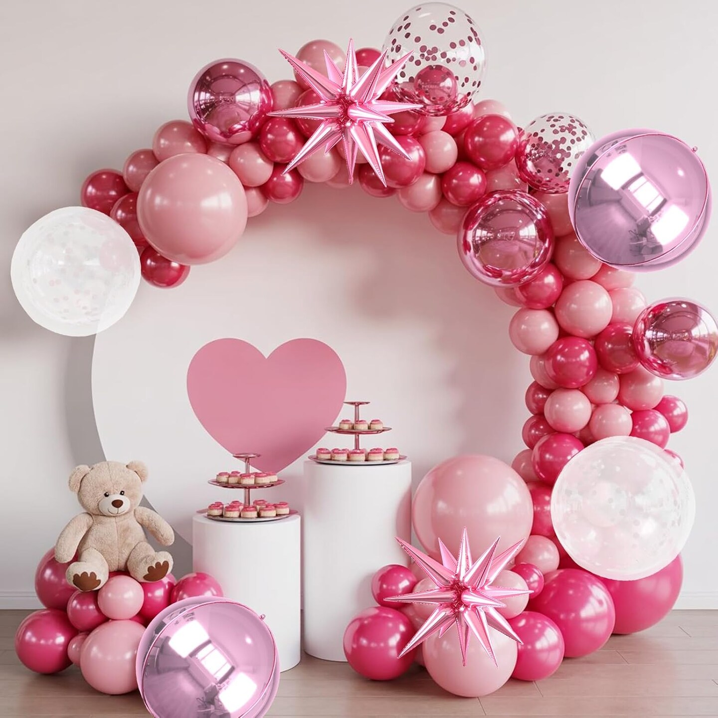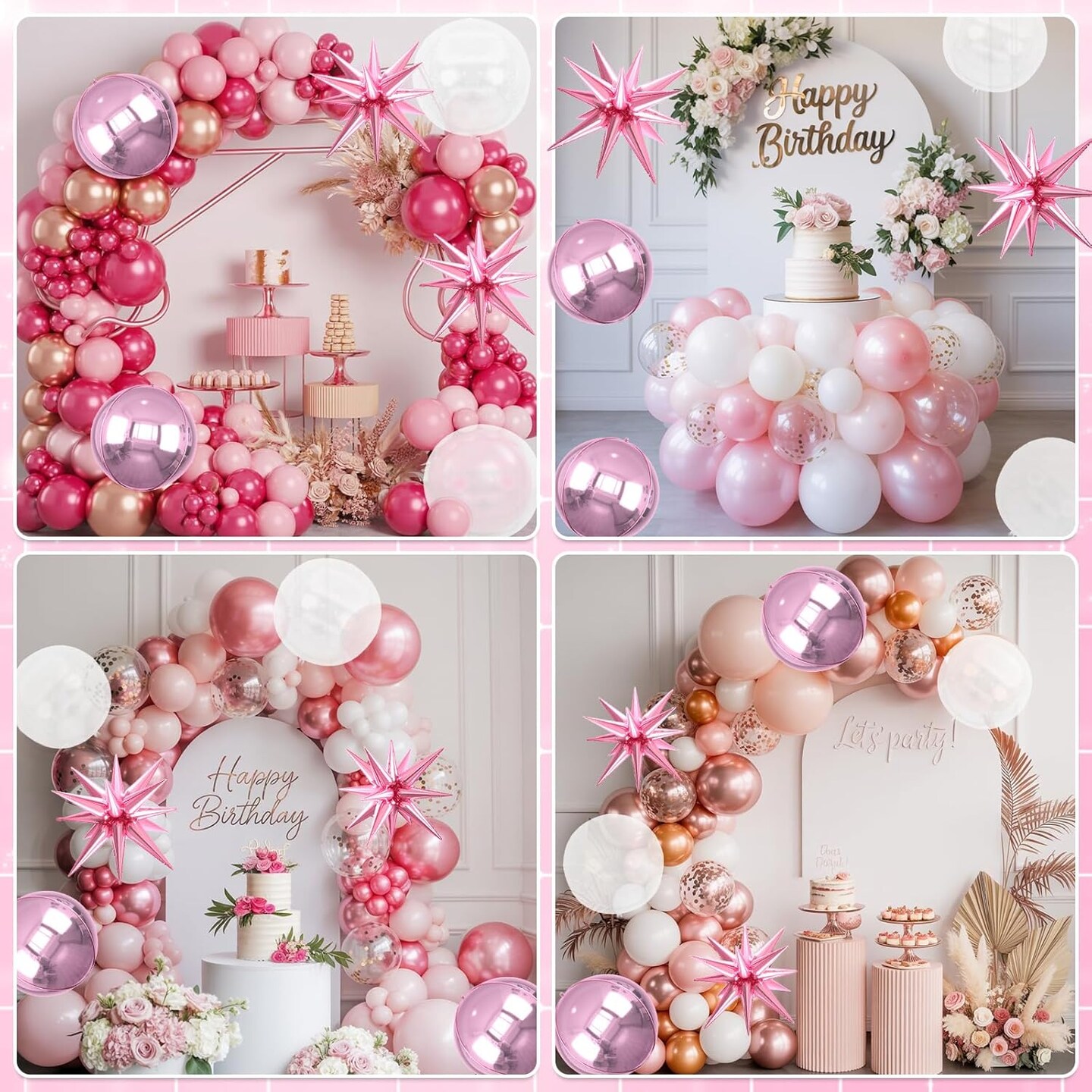 6pcs 22 inch Pink Star Balloons and 4D Large Foil Balloons(Pink Iridescent)