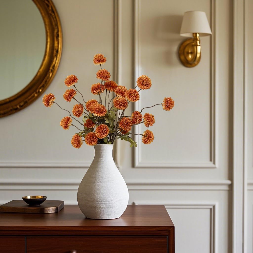 6pcs Artificial Pompon Mum Flowers - Burnt Orange