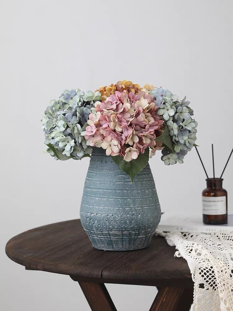 6pcs Artificial Silk Hydrangea Flower Bouquets - Deep Lake Blue