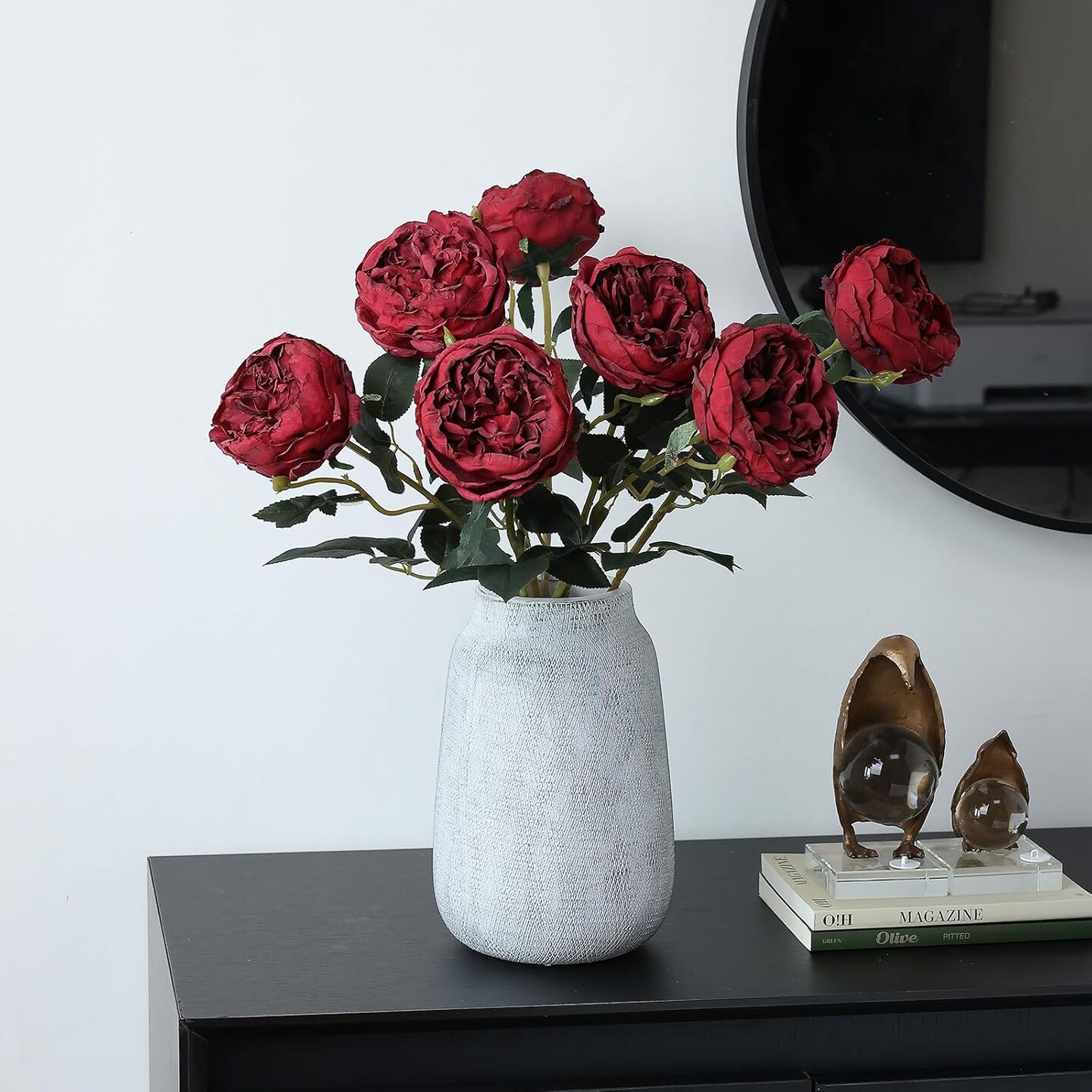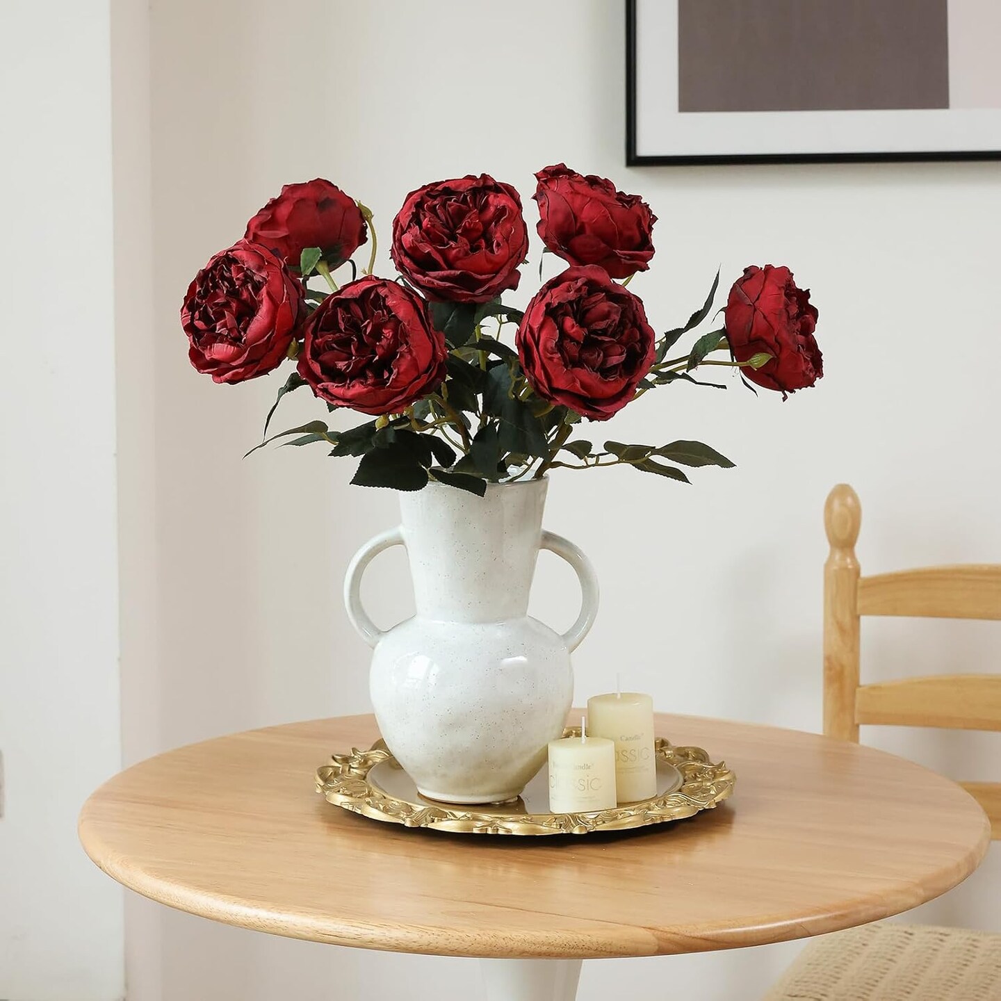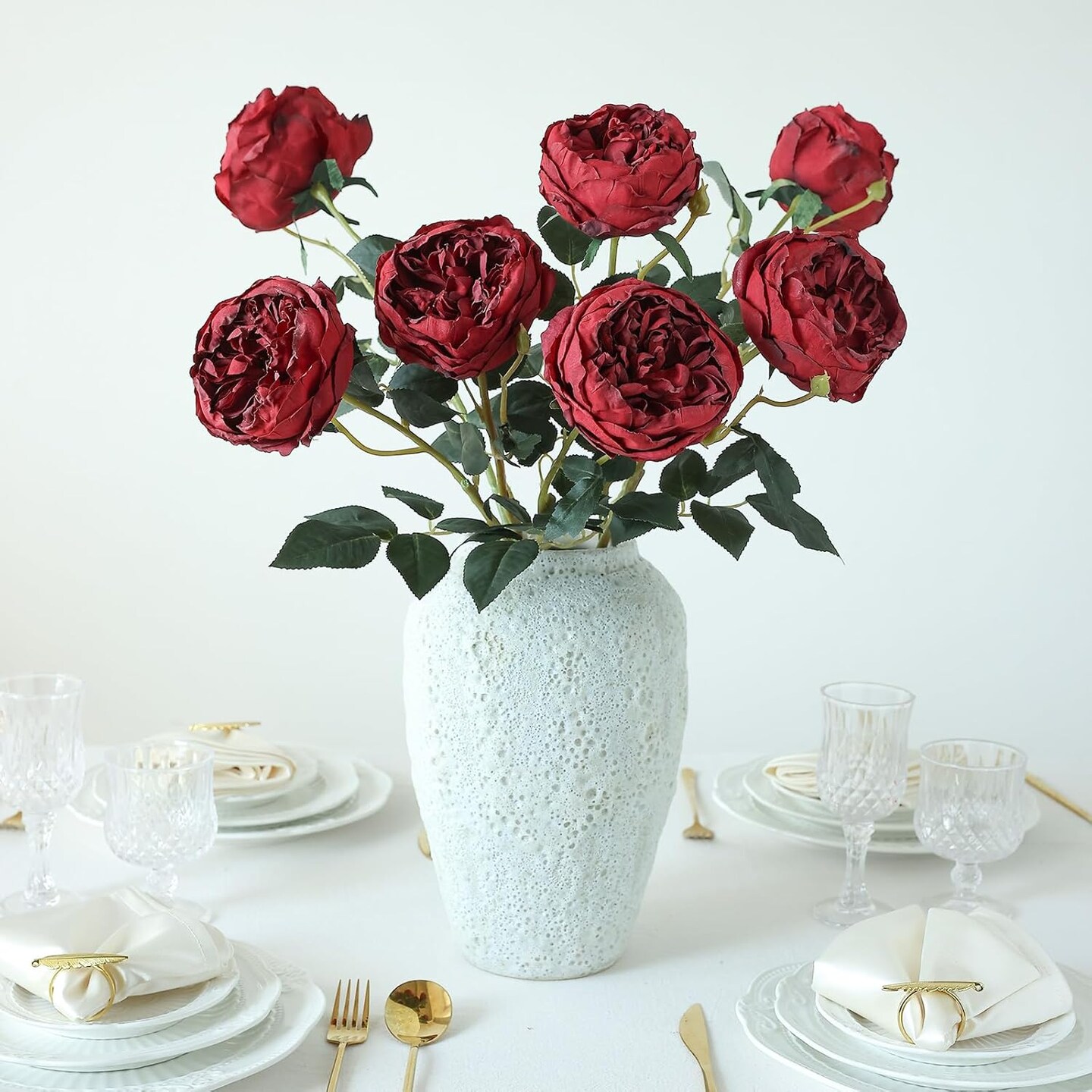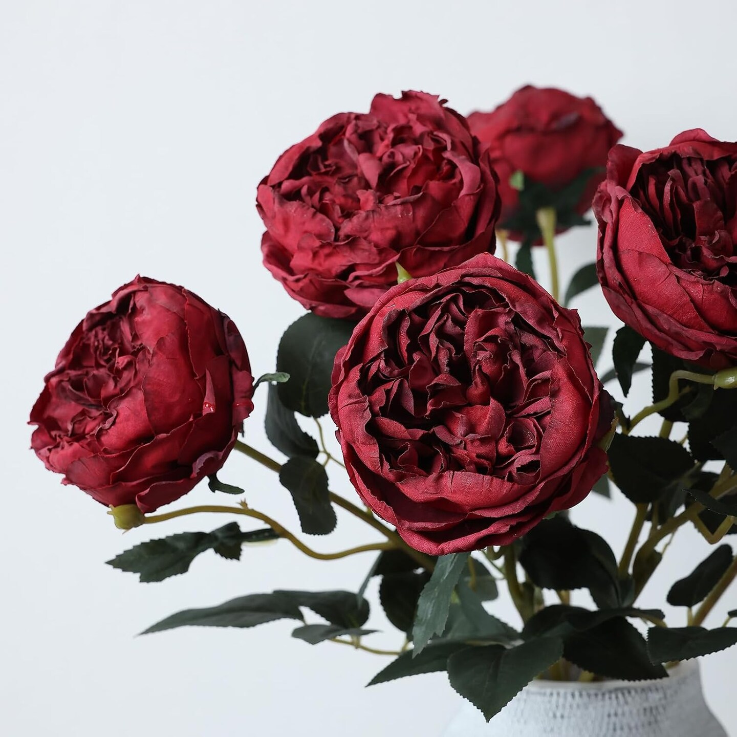 6Pcs Burnt Burgundy Artificial Roses Flowers Fake Silk Roses Flower (Burnt Burgundy)