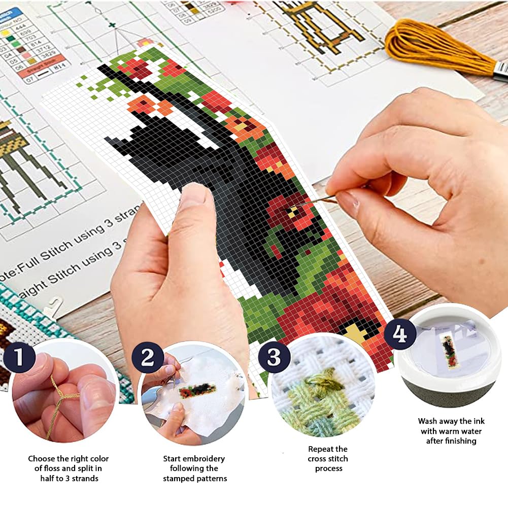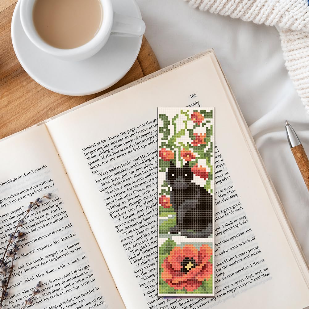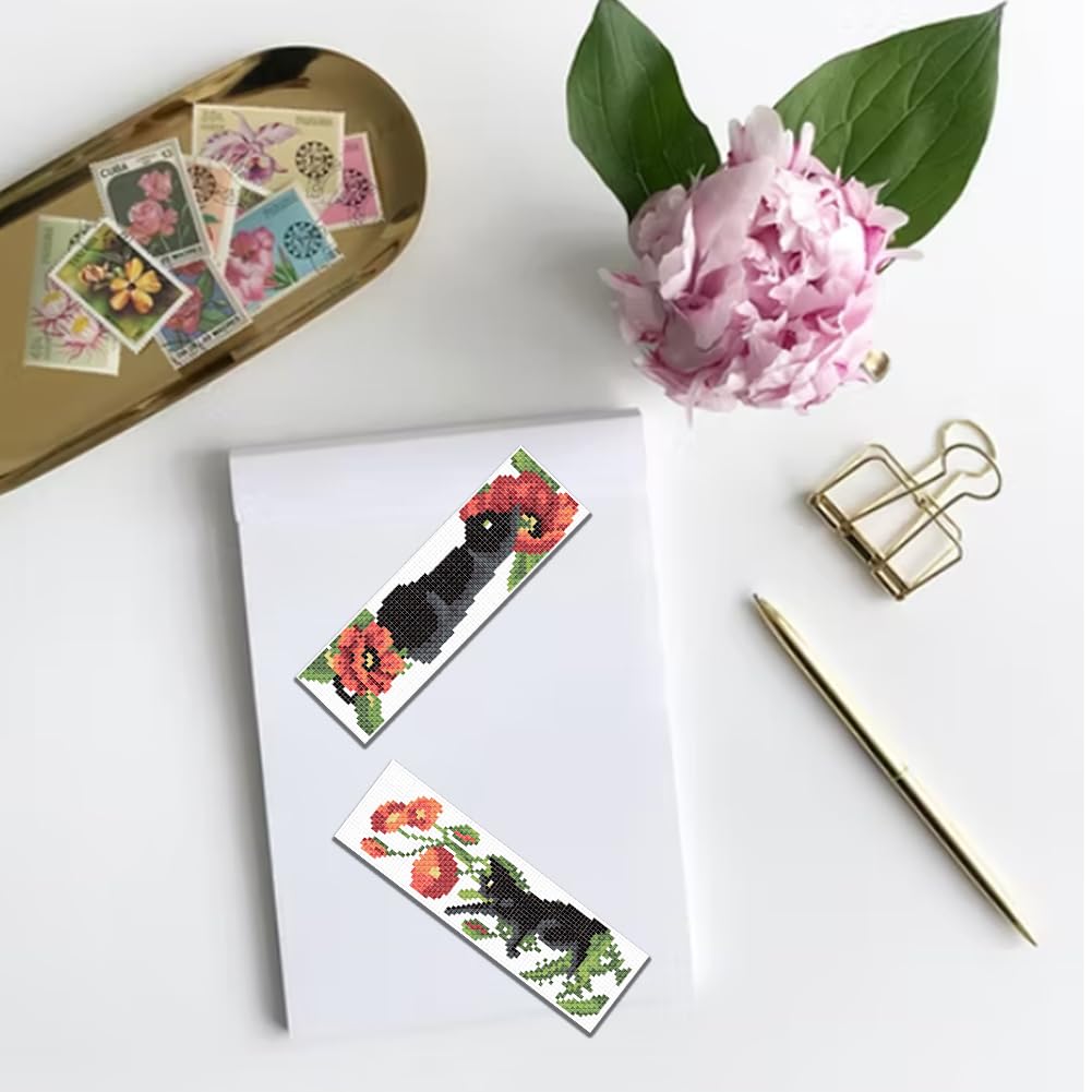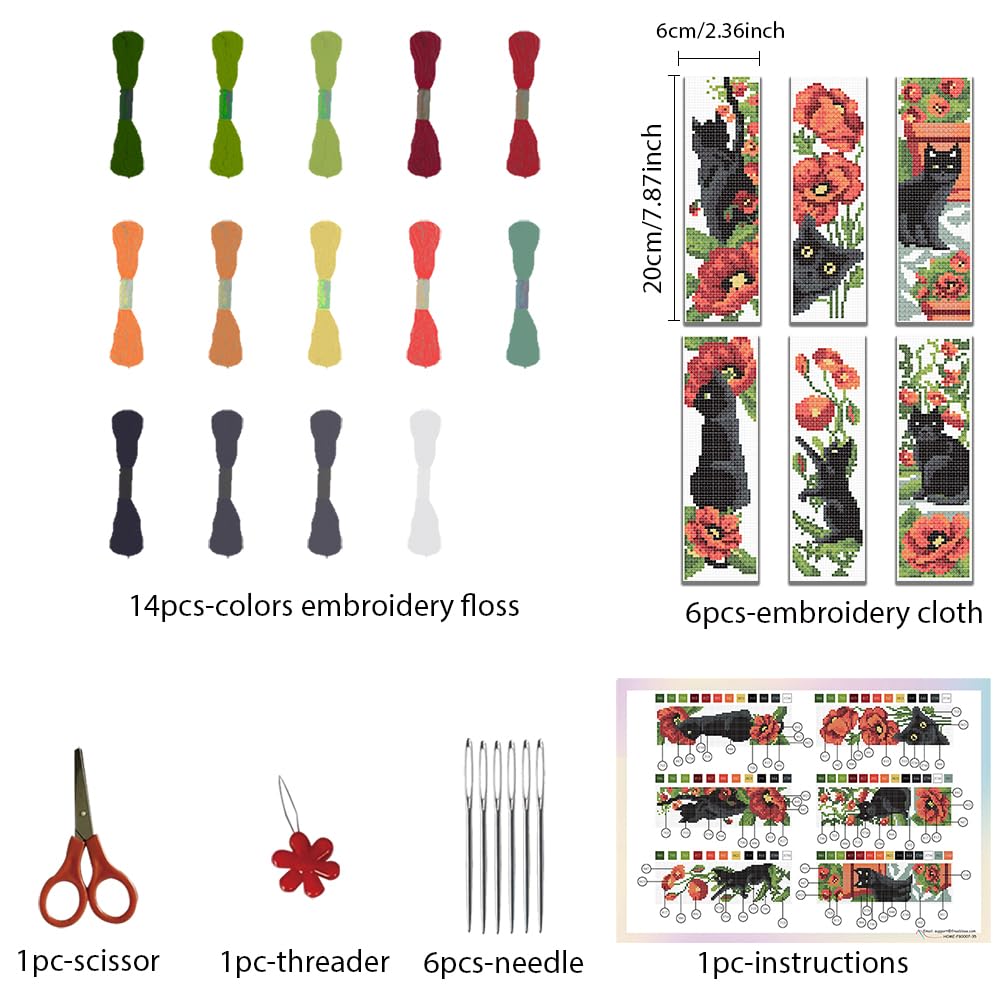 6Pcs Cross Stitch Bookmark Kits Cat Stamped Embroidery Bookmarks Beginner Embroidery Kit with Instructions Counted Cross Stitch Kit for Hand Embroidery Adults