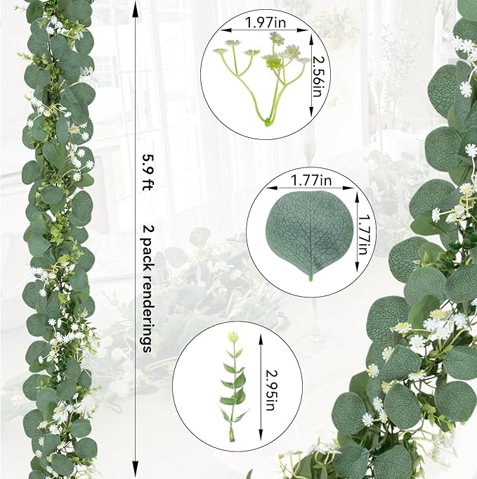 6Pcs Eucalyptus Garland,Artificial Eucalyptus Leaves Table Greenery Garland Wreath Vines for Wedding Party Table Bedroom Wall Decor
