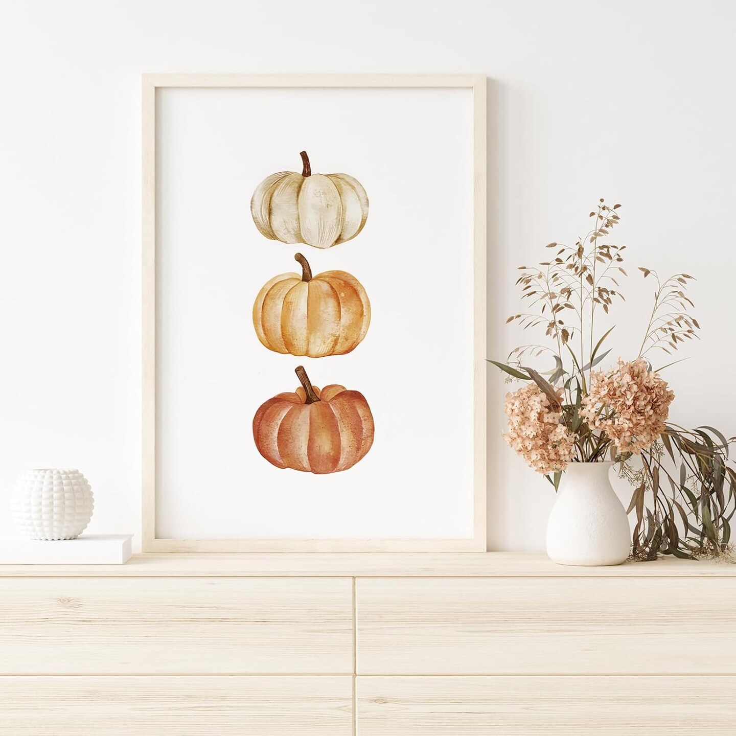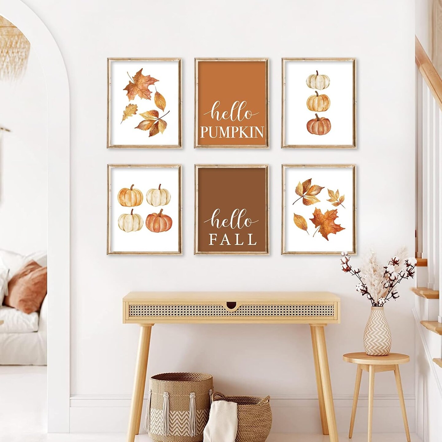 6Pcs Fall Wall Art Prints Watercolor Pumpkin Maple Leaf Art(Paper)