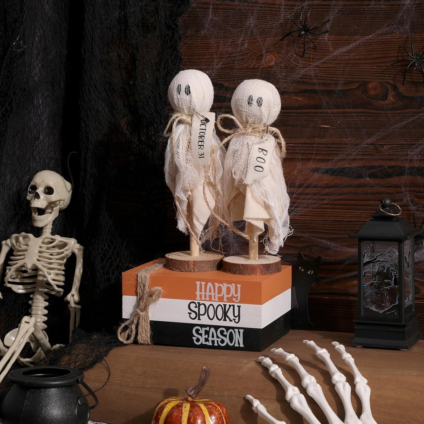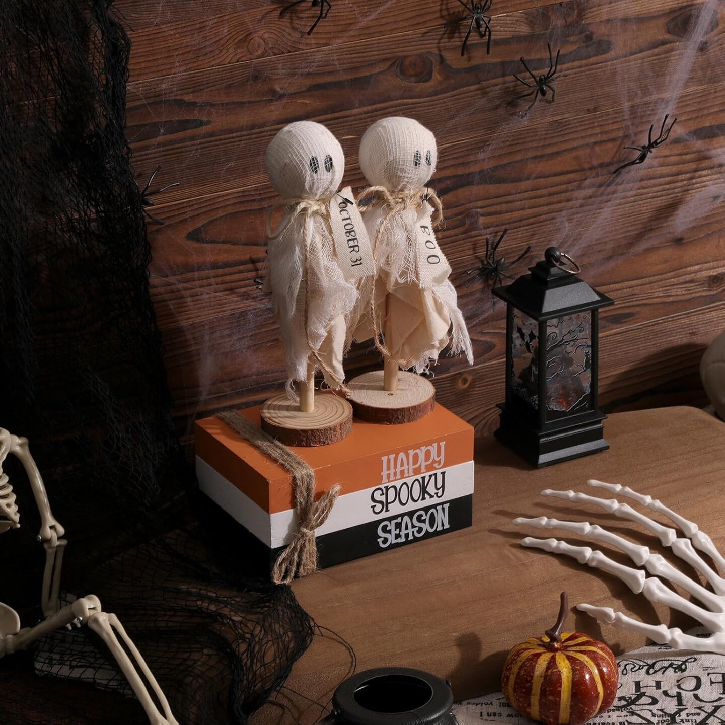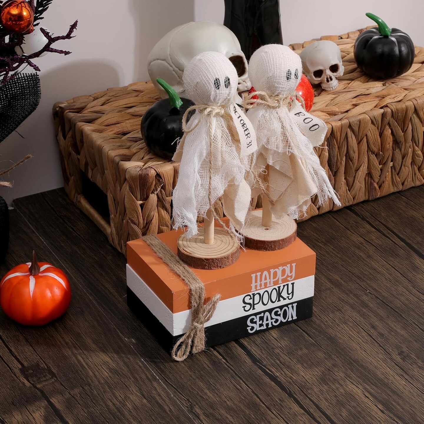 6PCS Halloween Decorations Indoor Wood Book Stack (Happy Spooky Season)